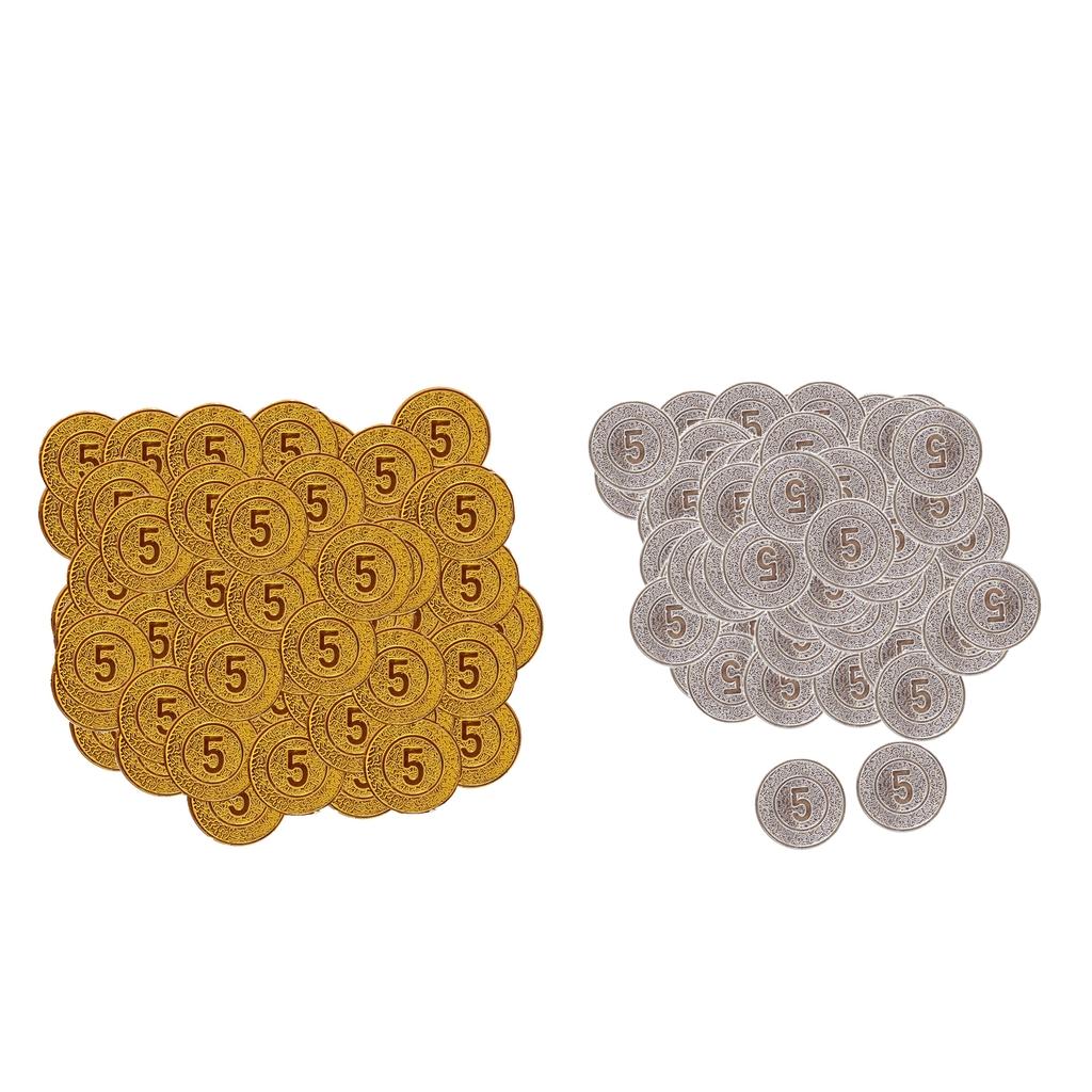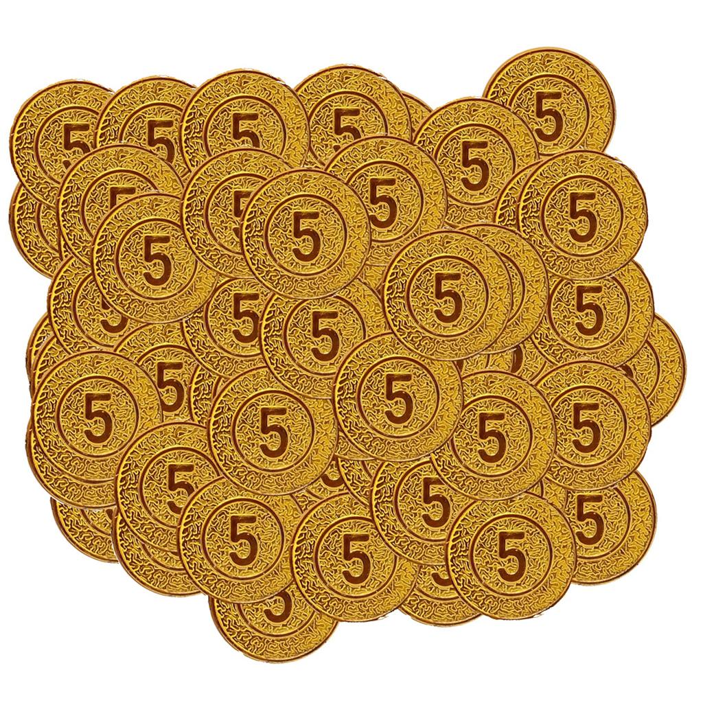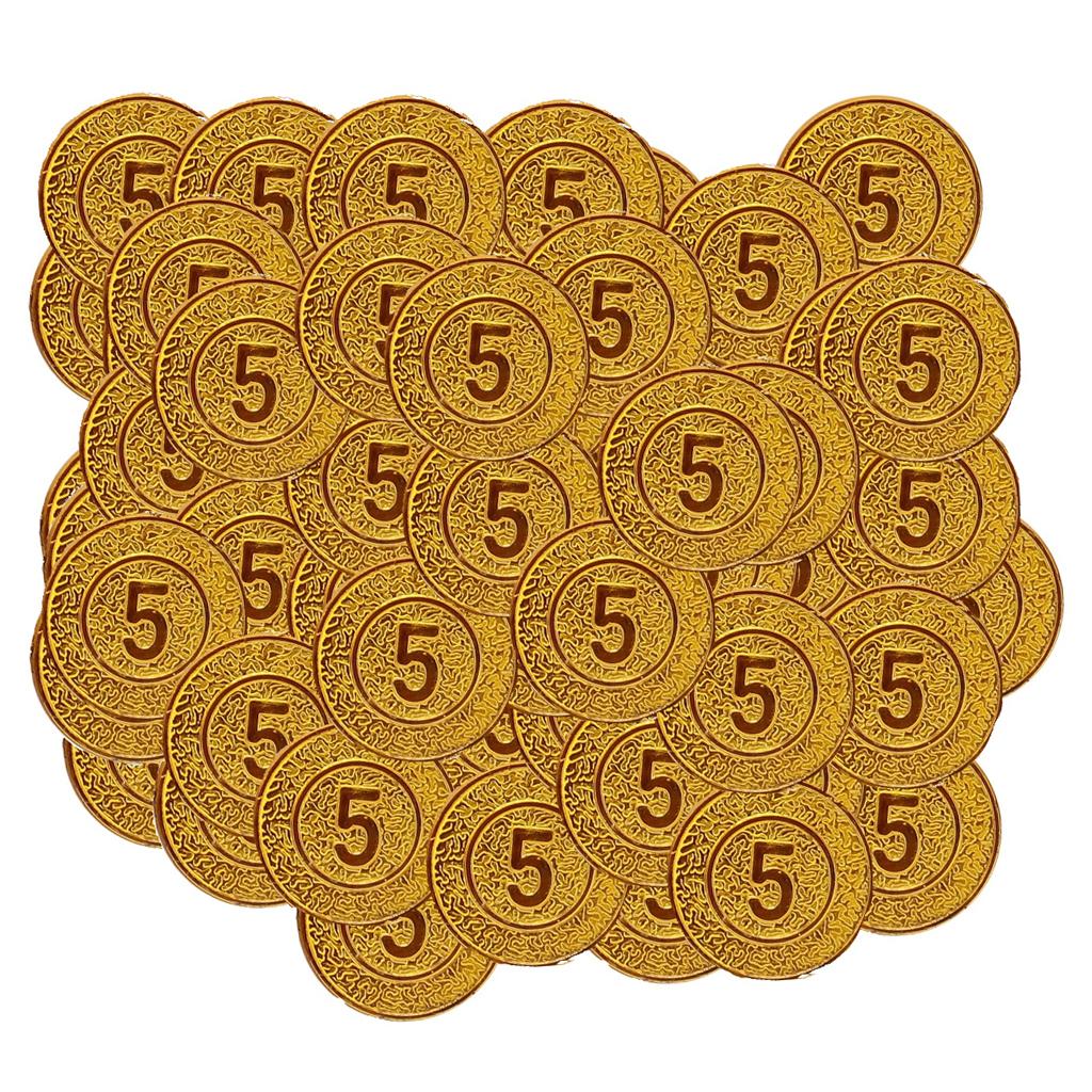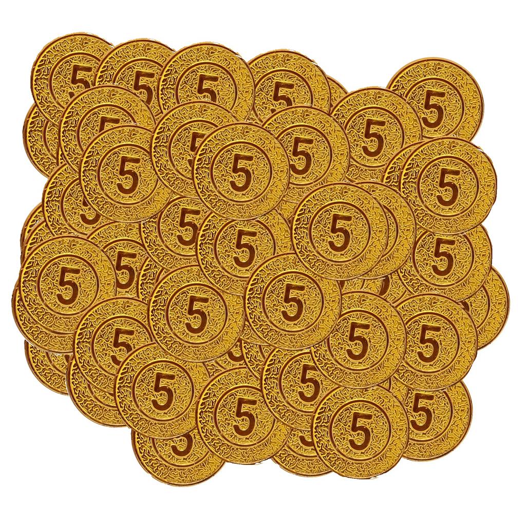 -Pack of 100 Plastic Toy Coins in 5 yuan, Made of durable safe plastic. Recommended for children 3+ years.