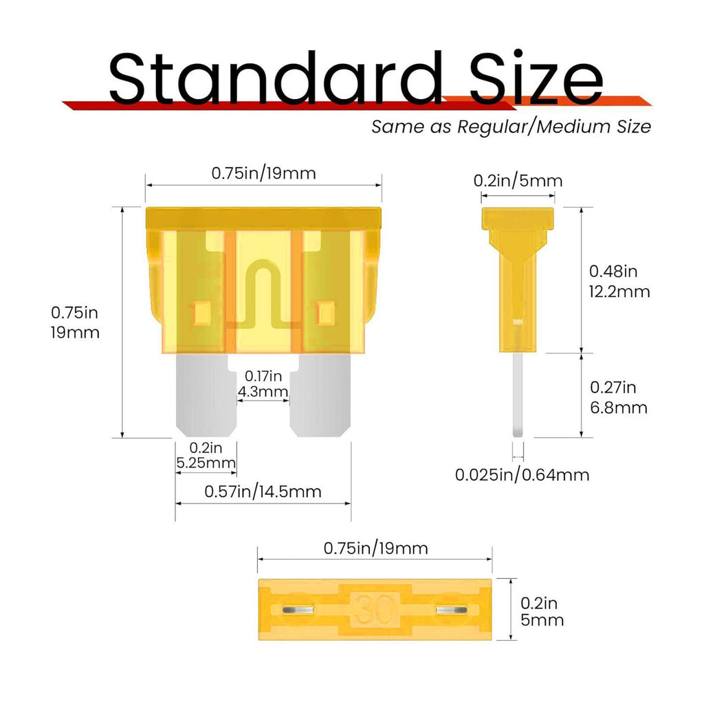 【Compact Size】Auto Car Truck Blade Fuse measures approx 1.9cmx1.9cmx5mm/0.75inchx0.75inchx0.20inch