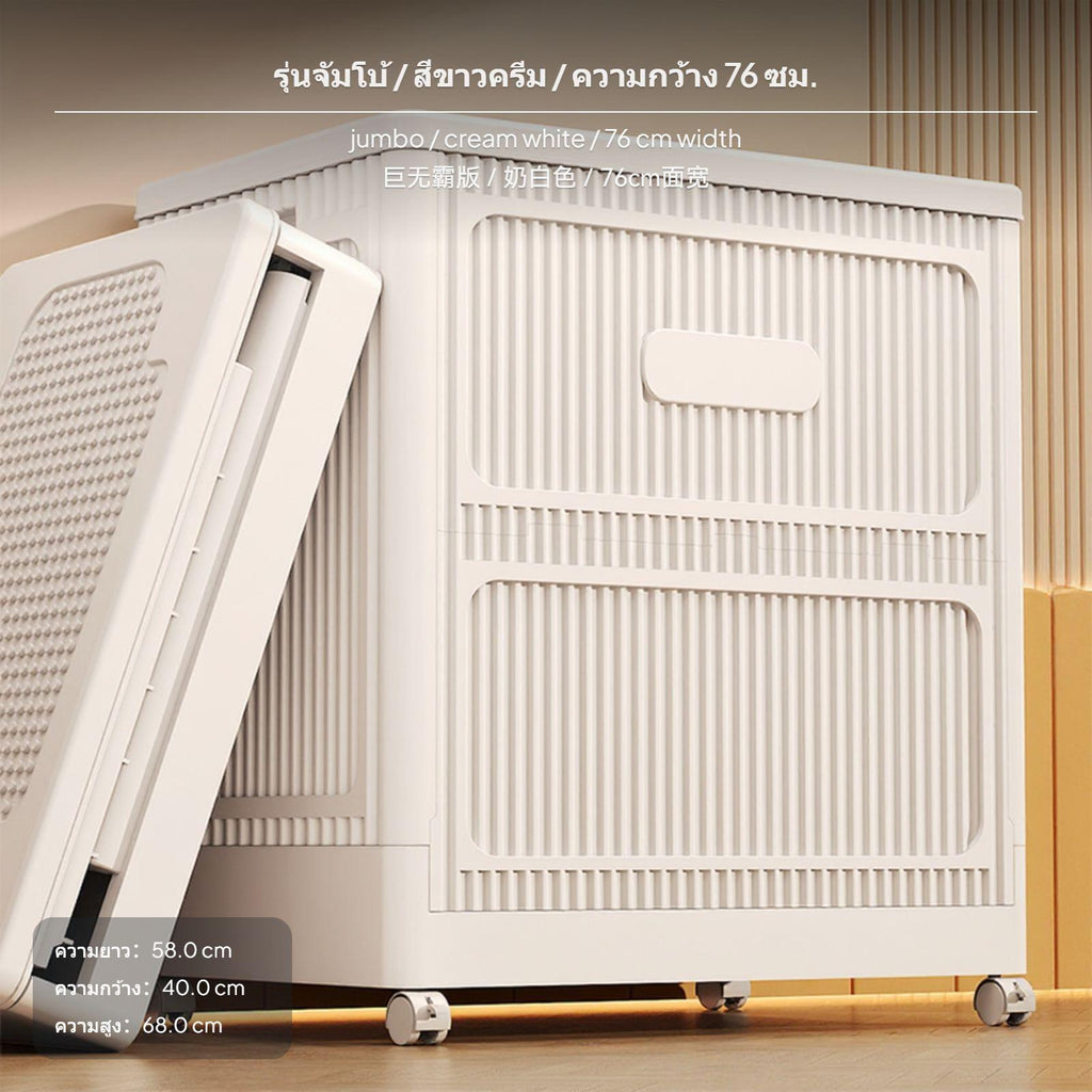 [Spacious superLarge Capacity] This 100L toy storage box is perfect for organizing plush toys and children's items, providing ample room to keep your child's belongings neat and tidy.[double-sided Opening Design for Convenience] Designed with a top flip lid and front door with a locking latch, making it easy to retrieve items from either side. The flip lid supports single-handed functionality for added convenience.[Portable and Space-Saving] Equipped with universal casters for easy mobility, and a foldable design that allows you to stow it away when not in use, saving valuable space in your home.[Stylish and Childchild-appropriate] Features a warm, cream gray finish with a modern aesthetic that blends seamlessly into any child's room. Its soft yet sturdy build ensures it is child-secure to handle.[Highly Protective and Hygienic] The fully enclosed dustproof design protects toys and other items inside, keeping the items clean, while the PP+HIPS material ensures enduring use with consistent reliability.Specification: