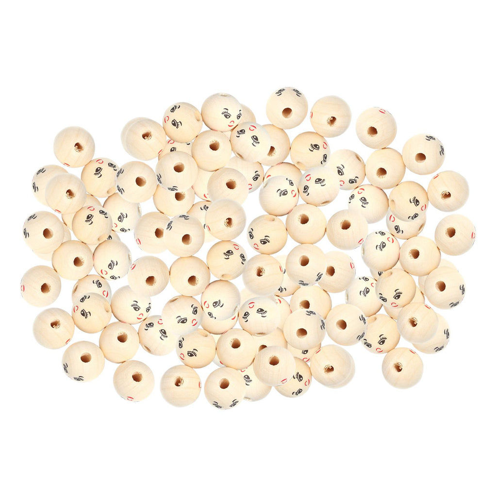 【Package Content】: You will receive 100 pieces of Smiling Doll Head Wooden Beads with Faces, you can make different handicrafts according to your preferences