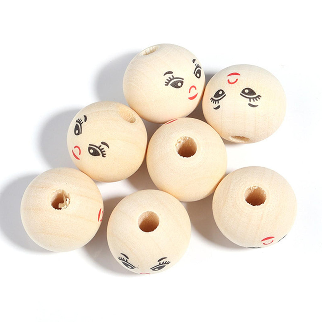 Maxbell 100Pcs Smiling Doll Head Wooden Beads with Faces Kids Loose Beads for Crafts Style B