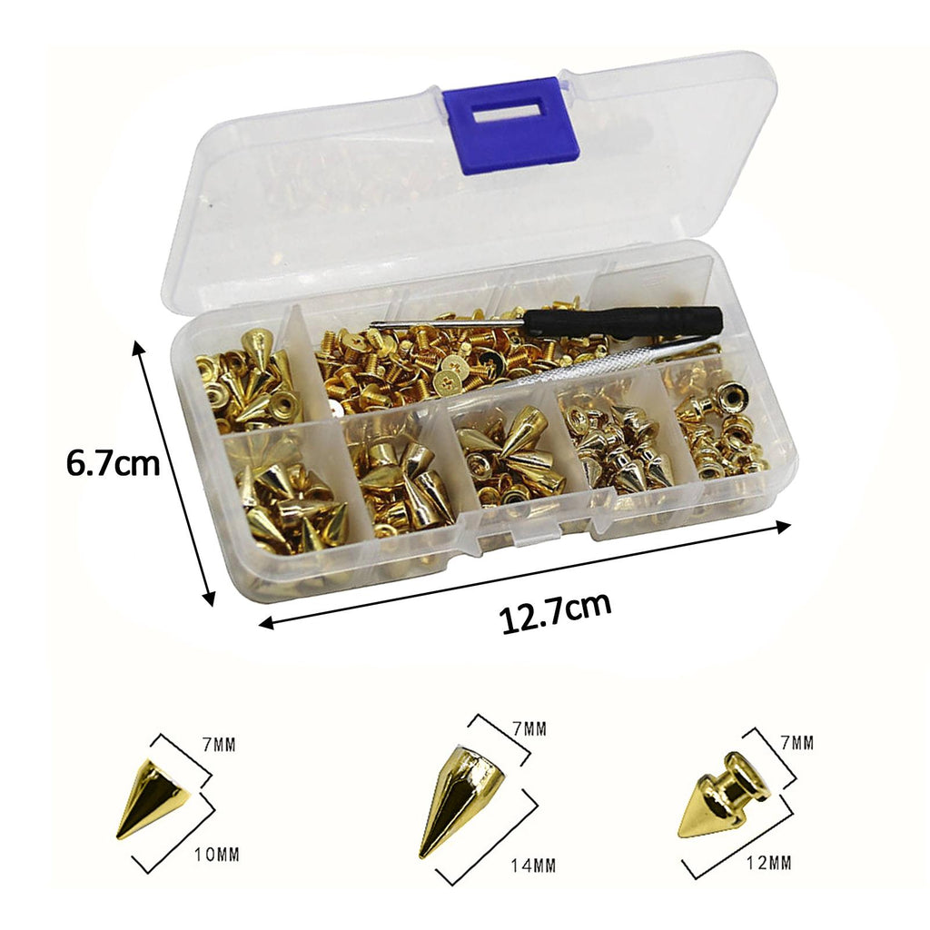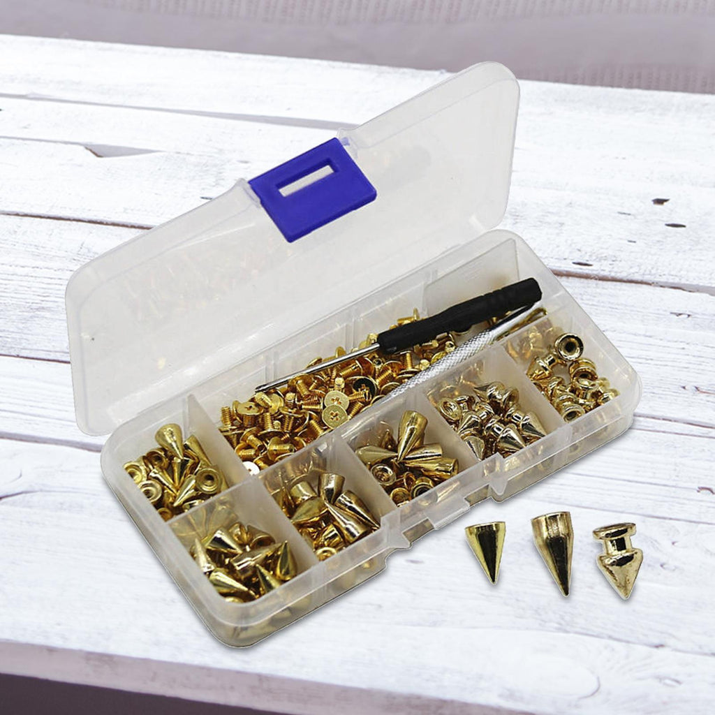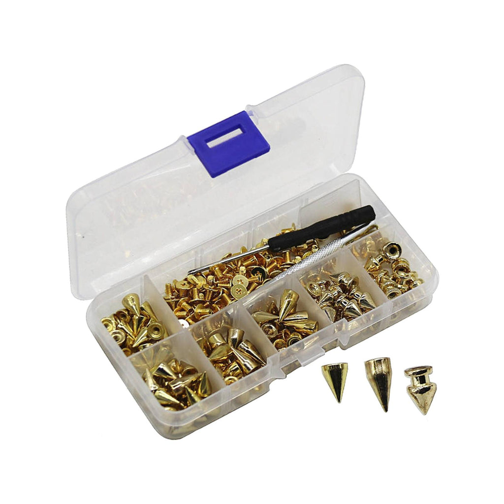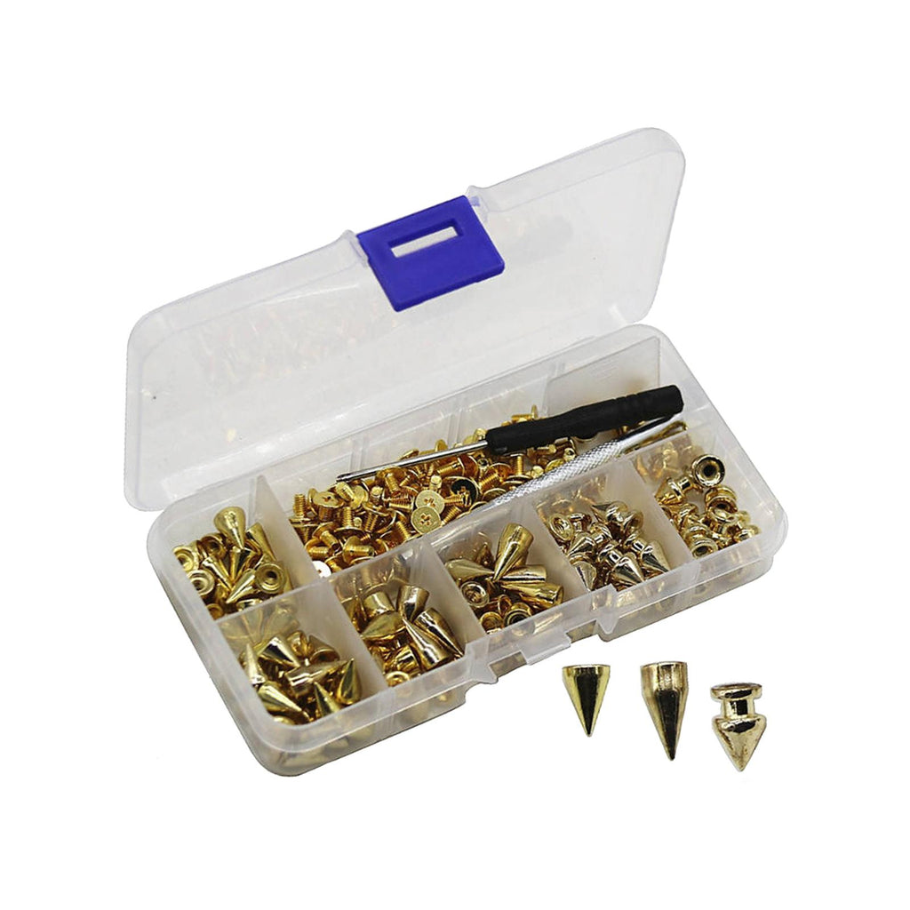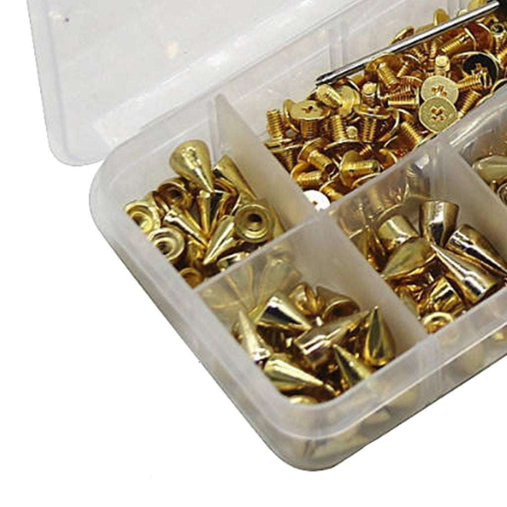 Maxbell 100x Cone Spikes Studs Mixed Shape Screw Back Studs for DIY Handcraft Jacket Gold Color