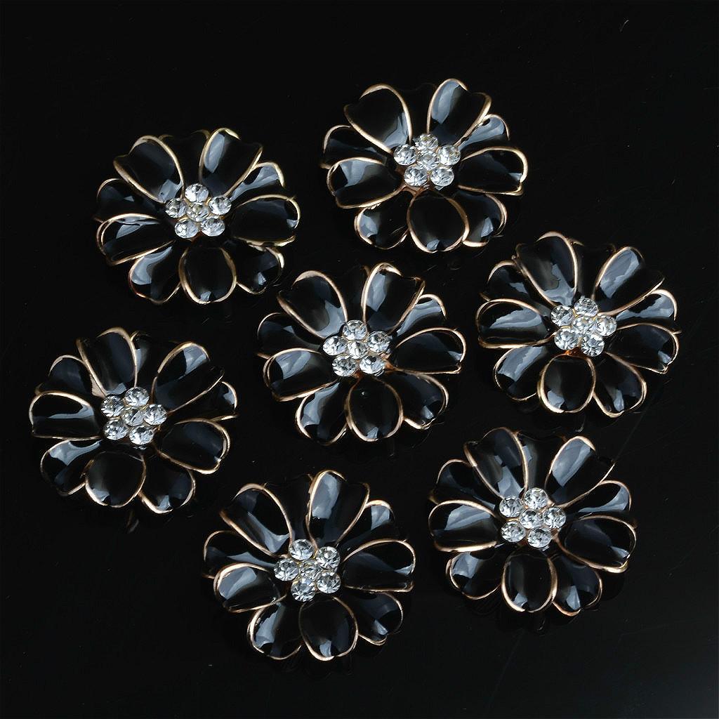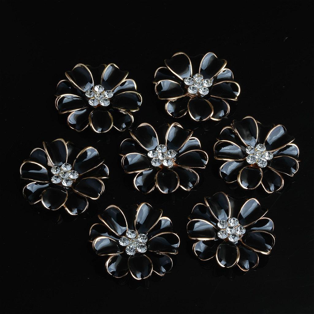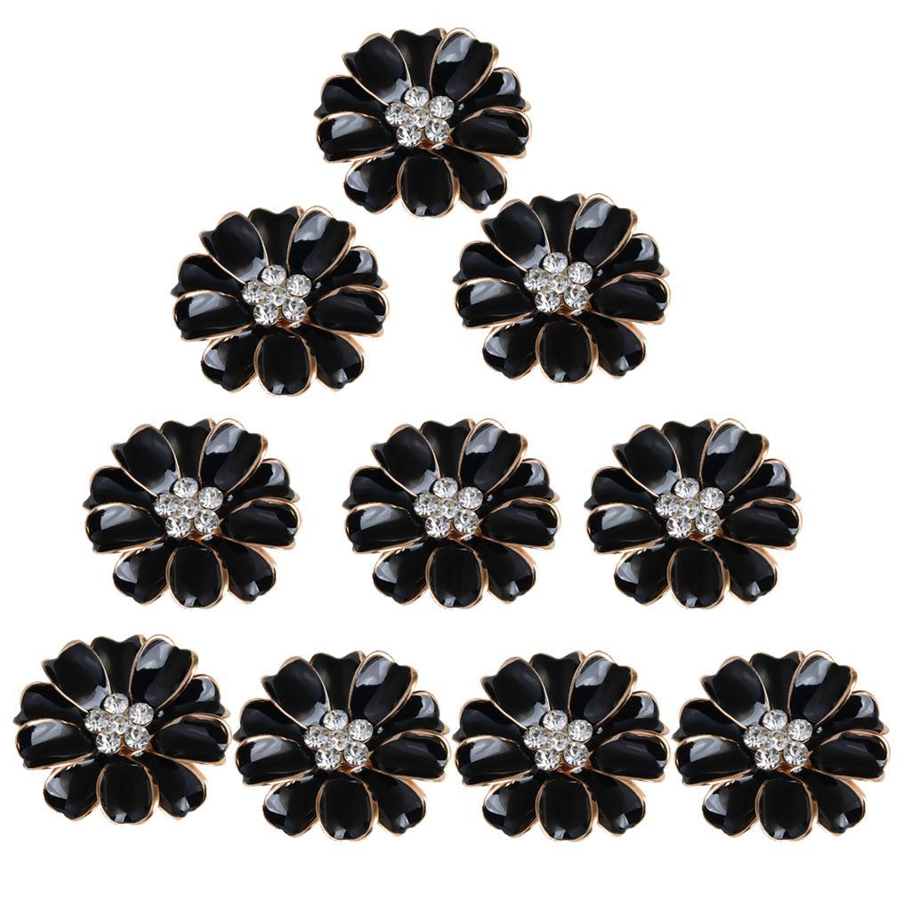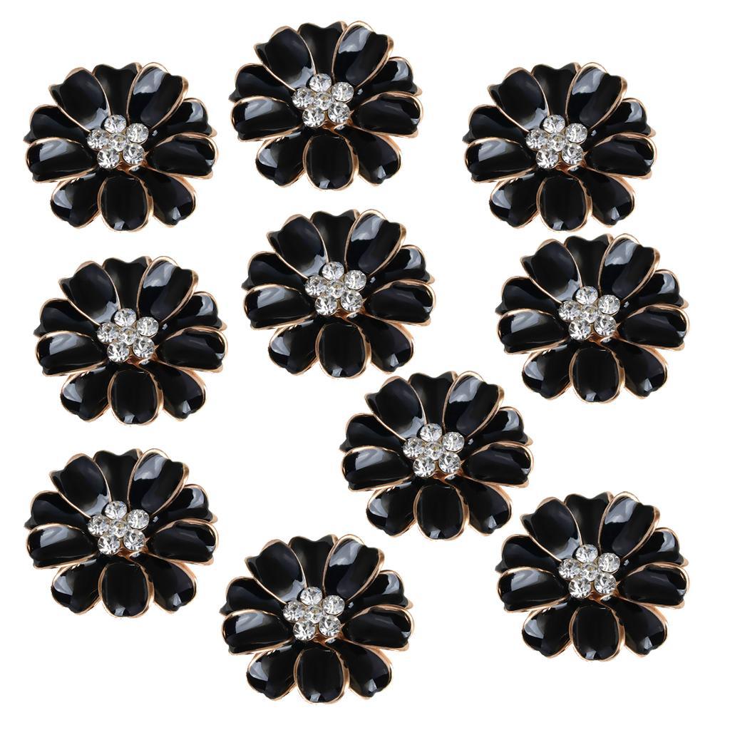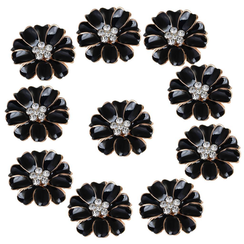 Maxbell 10pcs Metal Flower Rhinestone Buttons Flatback Embellishment Decor Black
