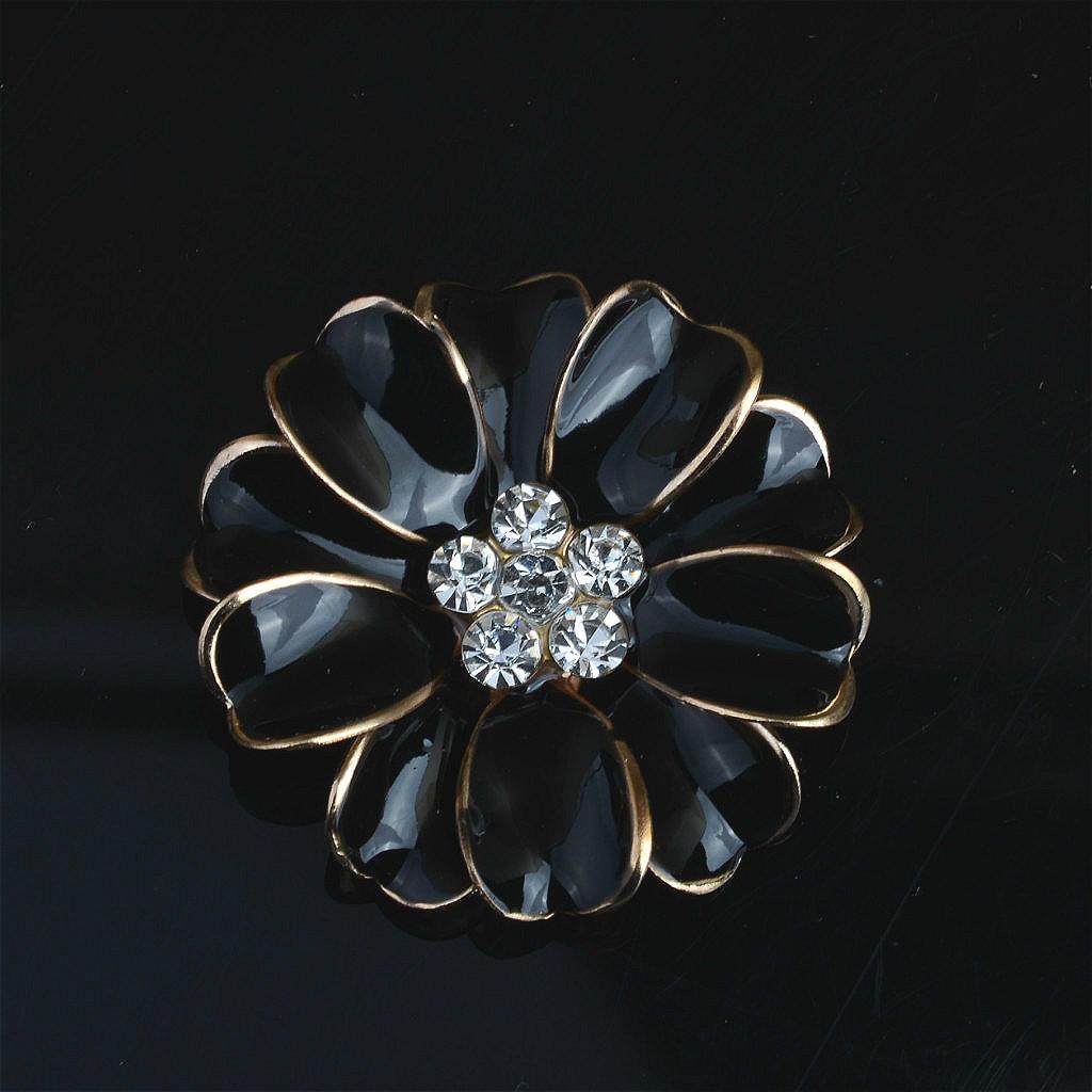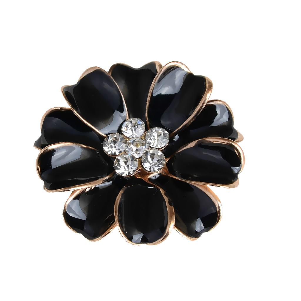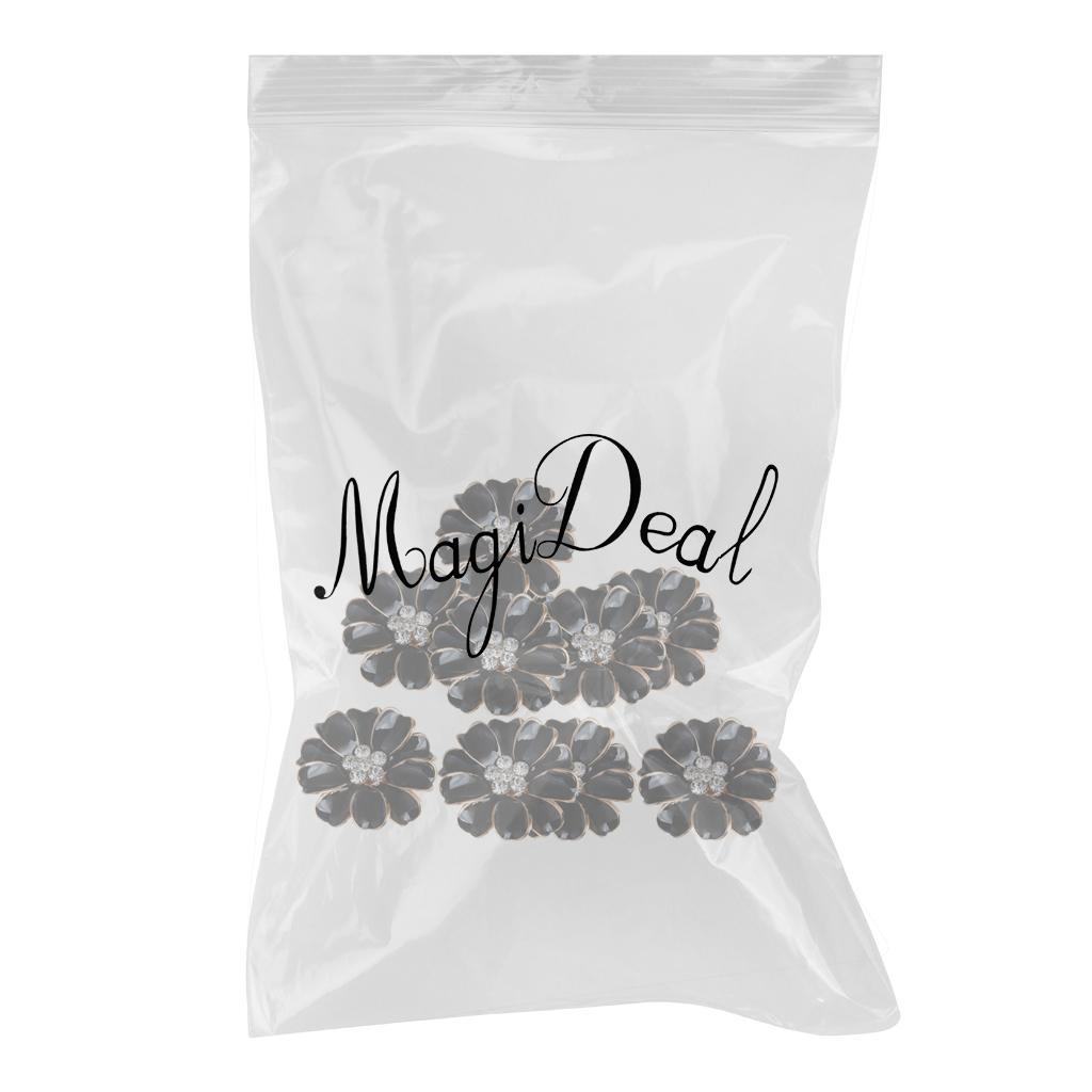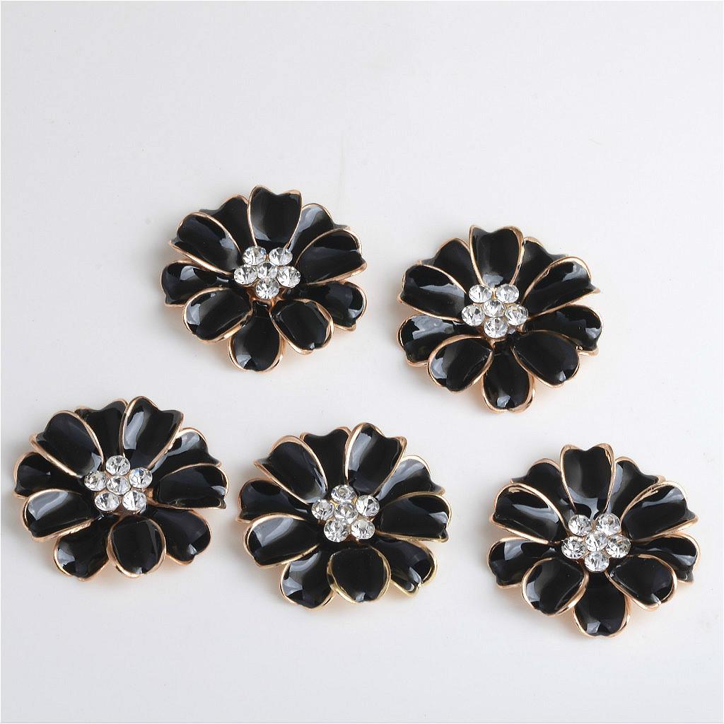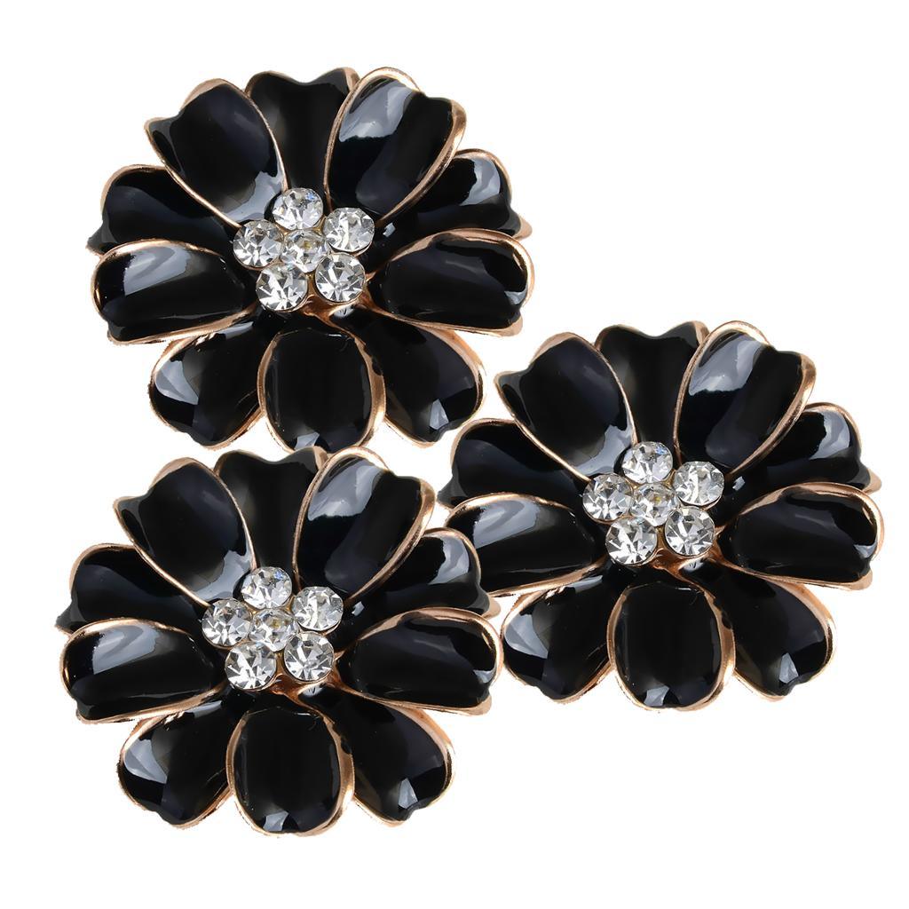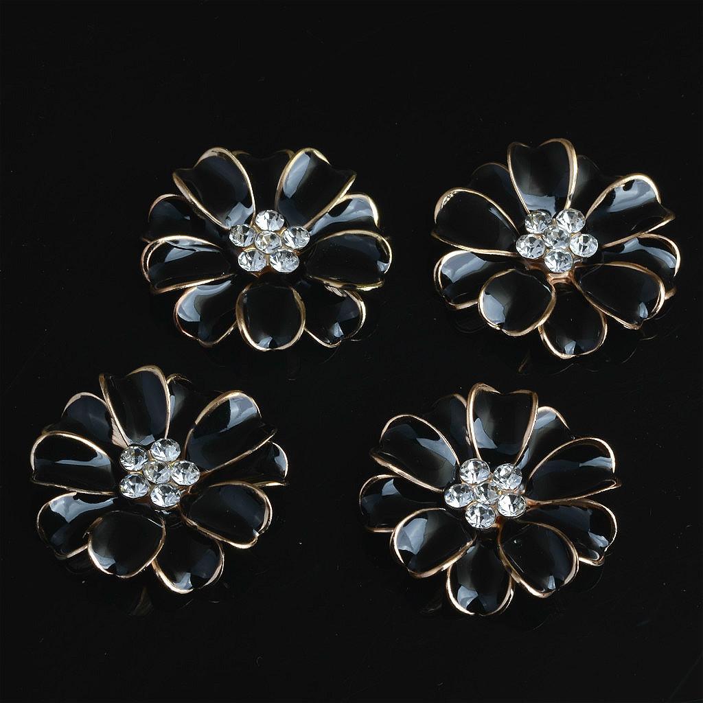 Maxbell 10pcs Metal Flower Rhinestone Buttons Flatback Embellishment Decor Black