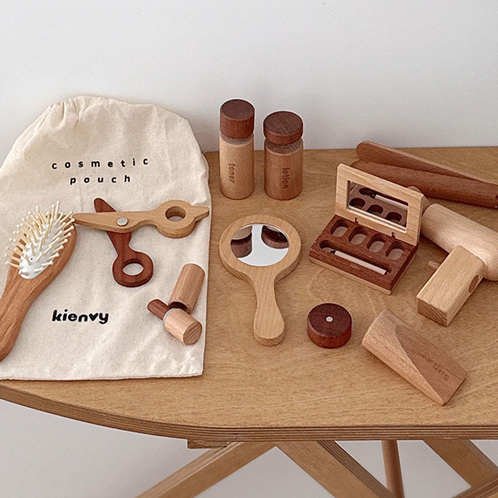 【Material】: Crafted with quality wood, this Makeup Toy Set features a smooth, rounded design without sharp edges or burrs, ensuring a secure and enjoyable playing time for children