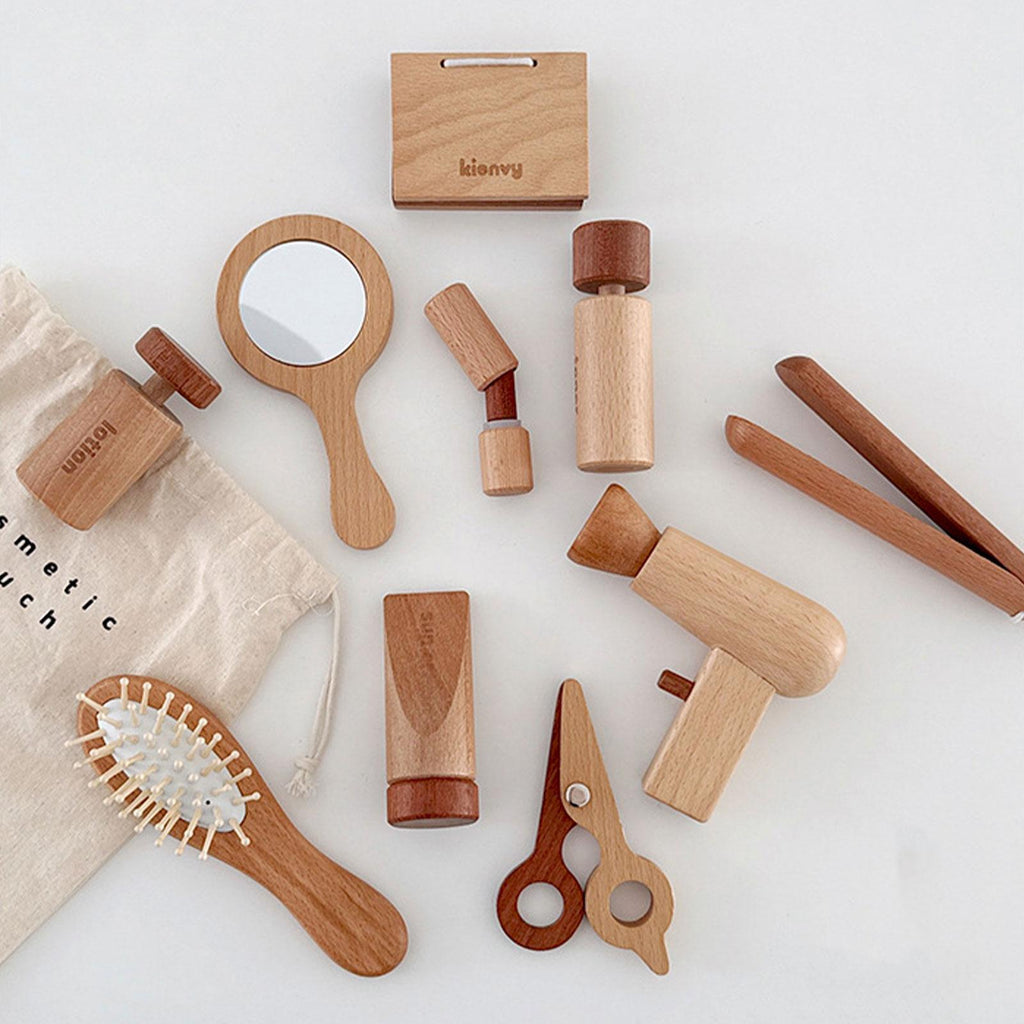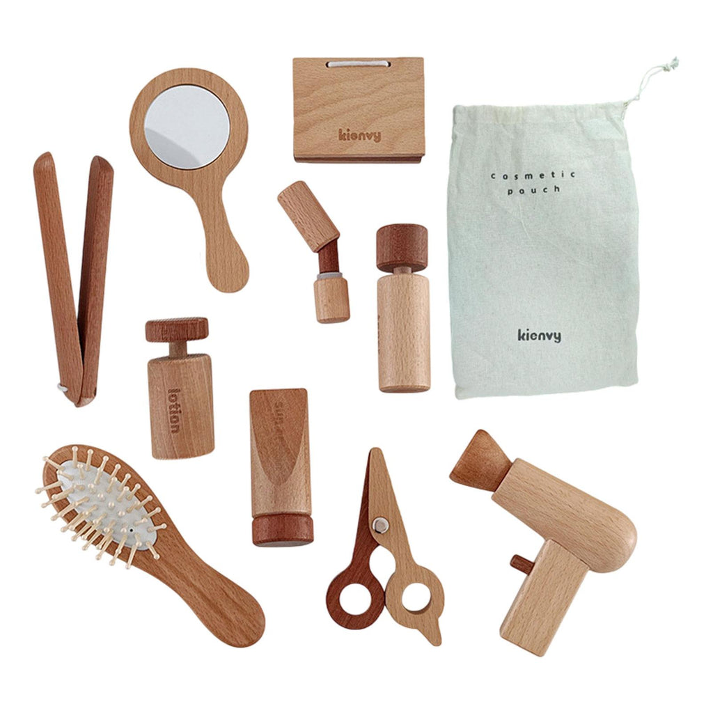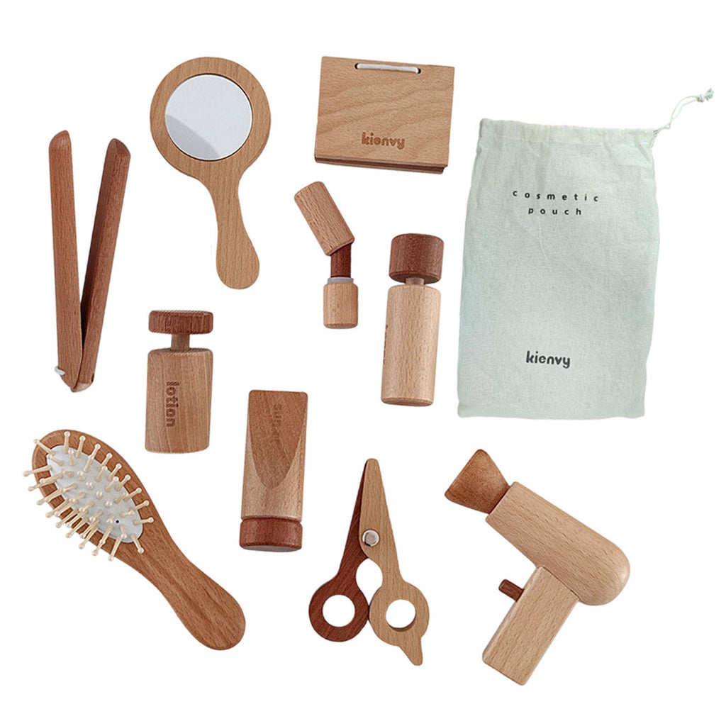 10Pcs Wood Makeup Toy Set Princess Makeup Kit for Children Toddlers Ages 3-6