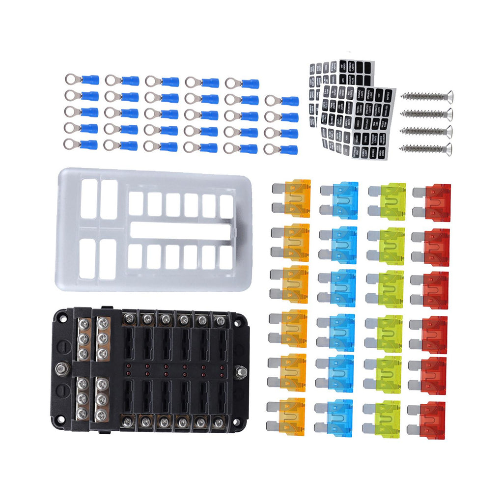 Maxbell 12 Circuit Fuse Box Durable Replaces Waterproof for Van Automotive Boat