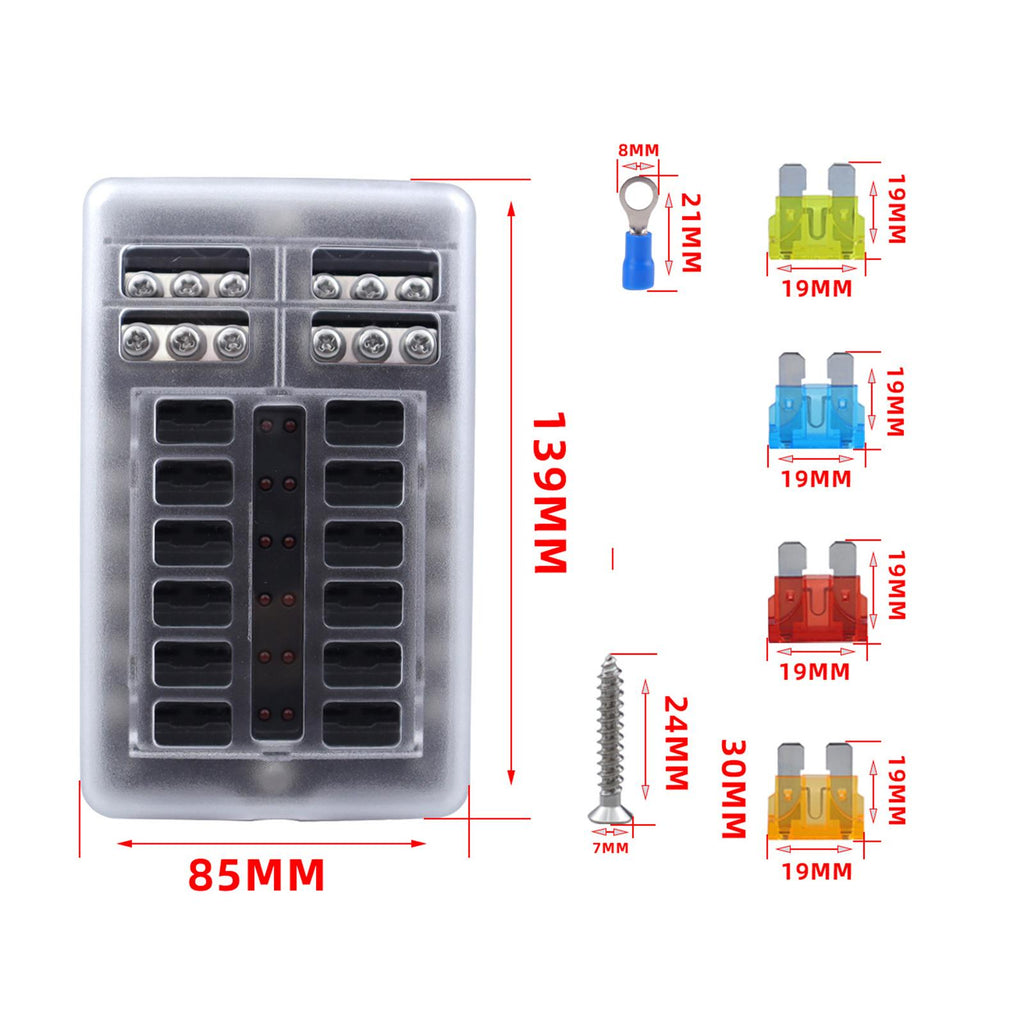 【Material】: This 12 Way Fuse Box is made of pc material, which is durable and reliable, ensuring long term performance even in challenging conditions.