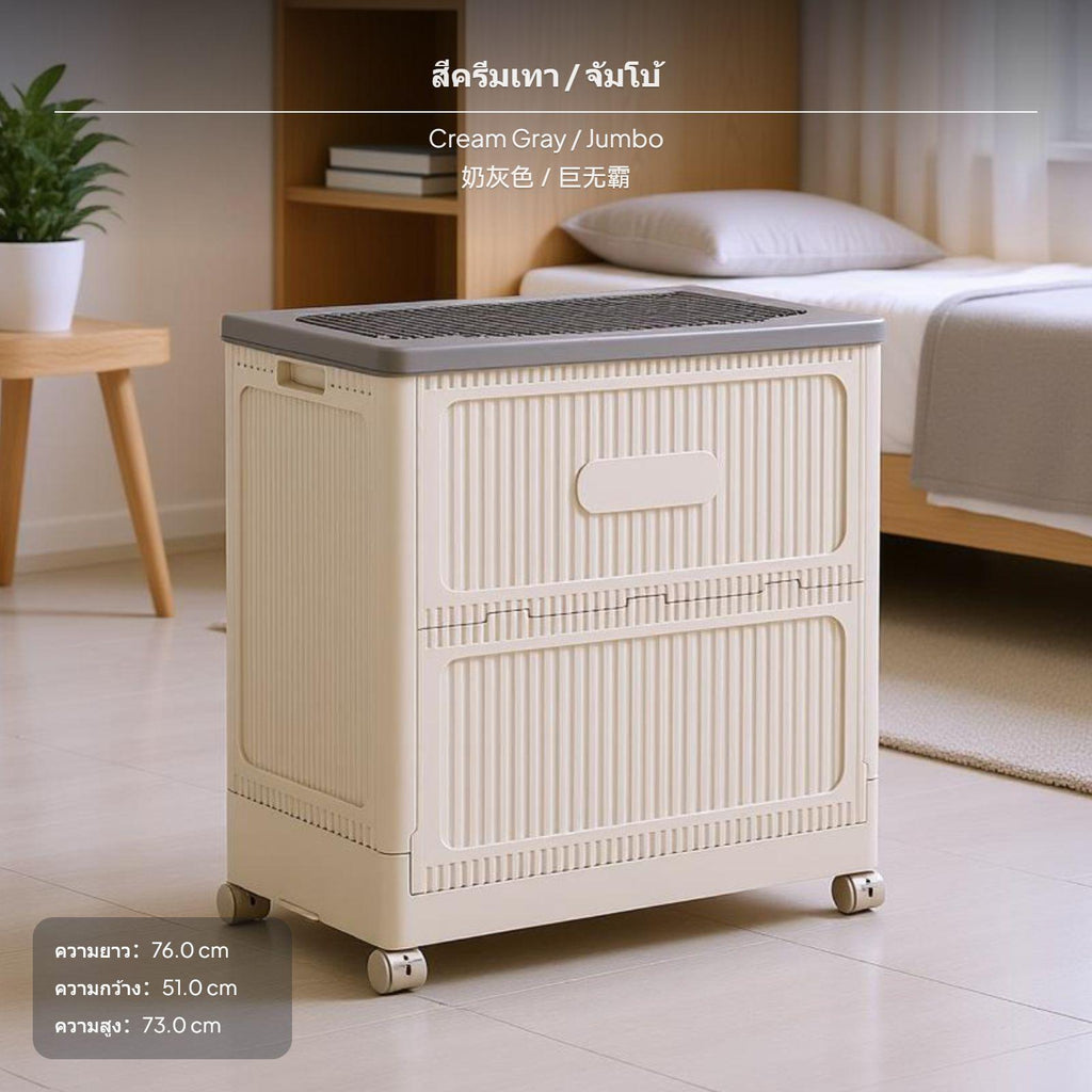 123L Foldable Storage Box, Large-Capacity Clothes Organizer, PP Material, No-Assembly, Bedroom Toy Cabinet 76 Cream Gray Jumbo