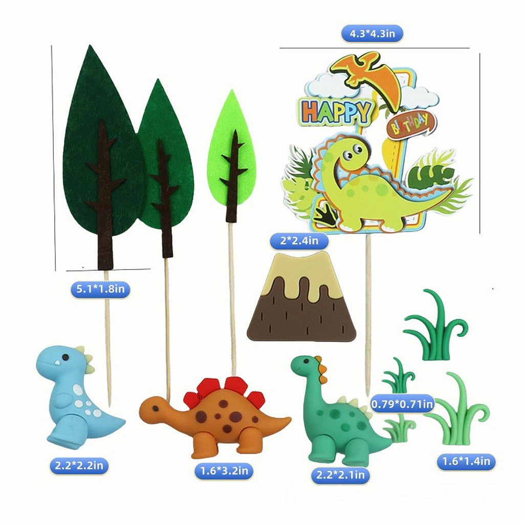 - 【Comprehensive Set】: 3 dinosaurs, 3 leaves, 4 grass pieces, 1 volcano, and 1 "Birthday" banner, ideal for gifting and creating unforgettable jungle adventure themed parties