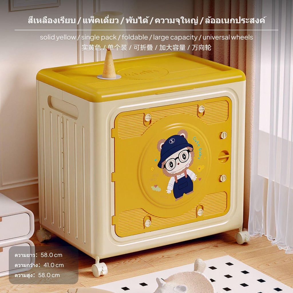 130L Foldable Storage Box With casters, doubleDoor Design, Large Capacity Organizer For Clothes & Toys Solid Yellow
