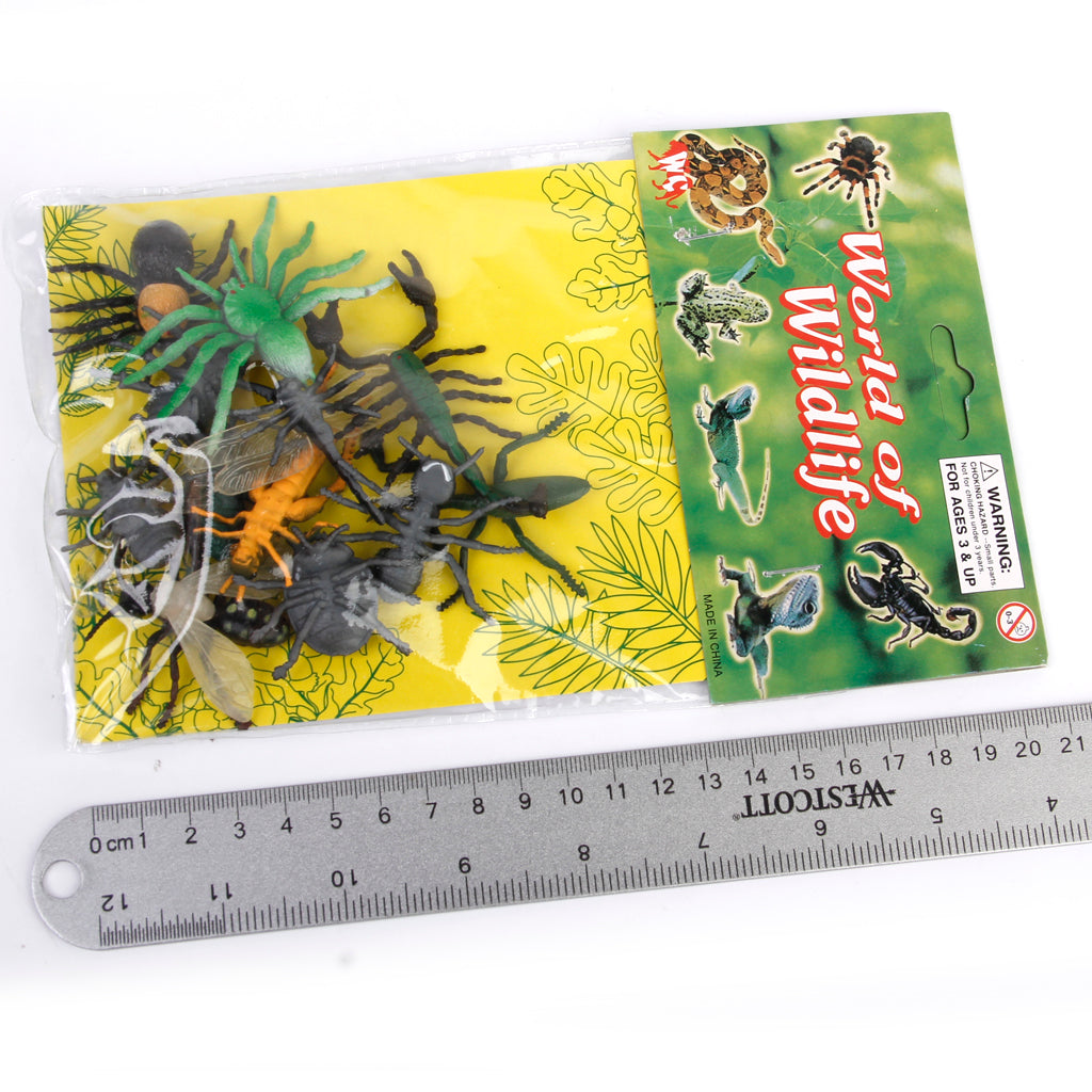 Including spider, ant, scorpion, bamboo beetle, beetle, dragonfly, ladybug, bee, locusts, and 2 flies