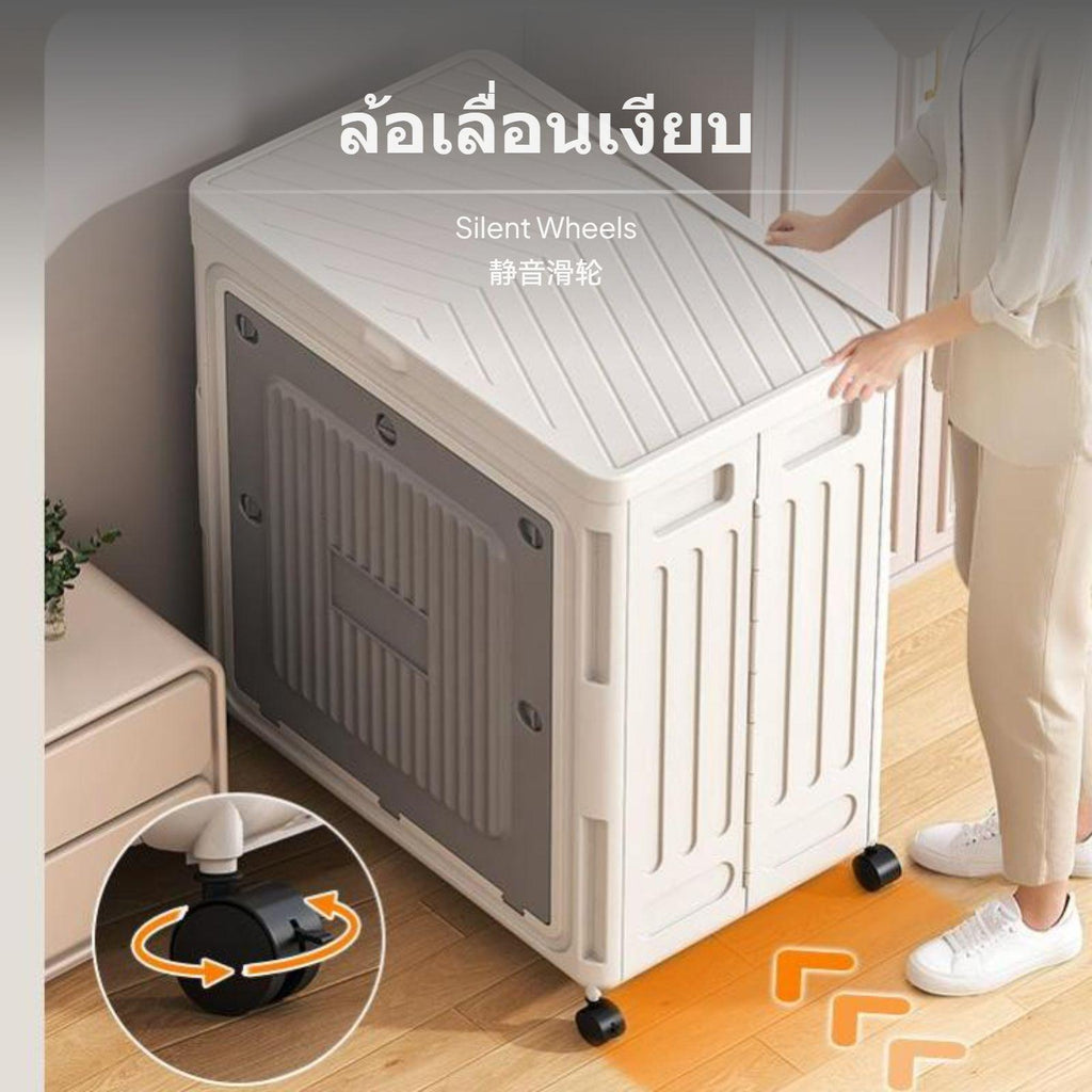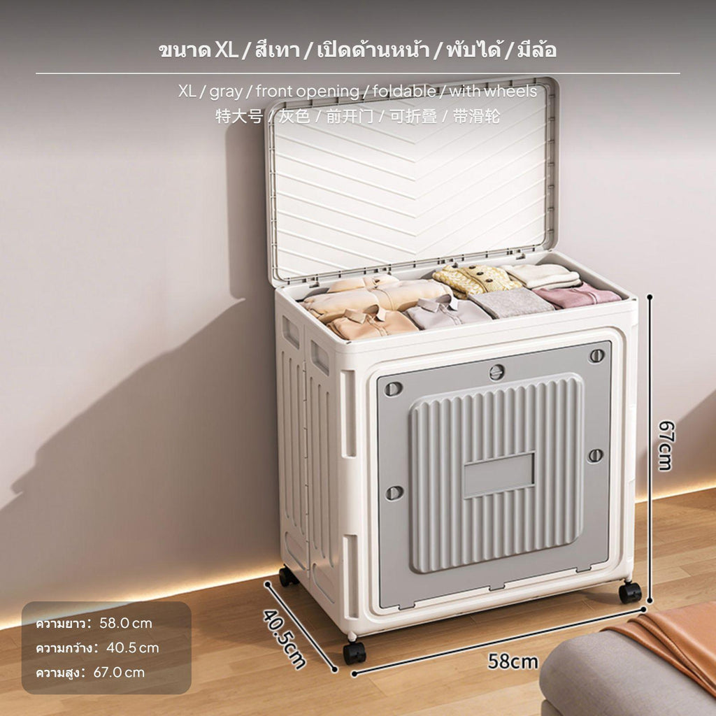 [Large Capacity Design] This 150L foldable storage box is perfect for organizing clothes, blankets, and toys, making it an superb addition for bedrooms, living rooms, and kids' rooms.[Usereasy-to-use reachibility] Equipped with front doors and a double-opening lid, this organizer allows you to easily reach items without unstacking, ensuring convenience and practicality.[Premium PP Material] Made of high-quality, odorodorless PP material that meets food-grade standards for safe and dependable use; ensures items are stored securely.[effortless Mobility with casters] Features quiet-glide universal casters for easy movement across tile, carpet, or wood floors; some casters also include brakes for added stability.[Comprehensive Protection] Fully enclosed design protects stored items from particles, moisture, and creepy-crawlies, keeping your belongings secure and preservedmaintained at all continuously.Specification: