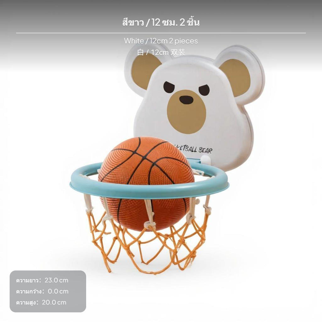 2 Basketball Indoor Kids Cartoon Bear Hoop Toy, Hanging Suction Mount 12cm 2pcs White