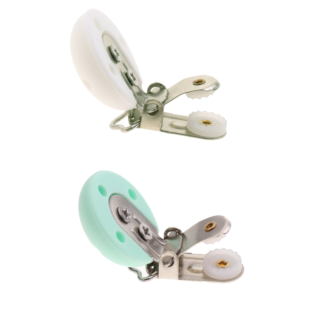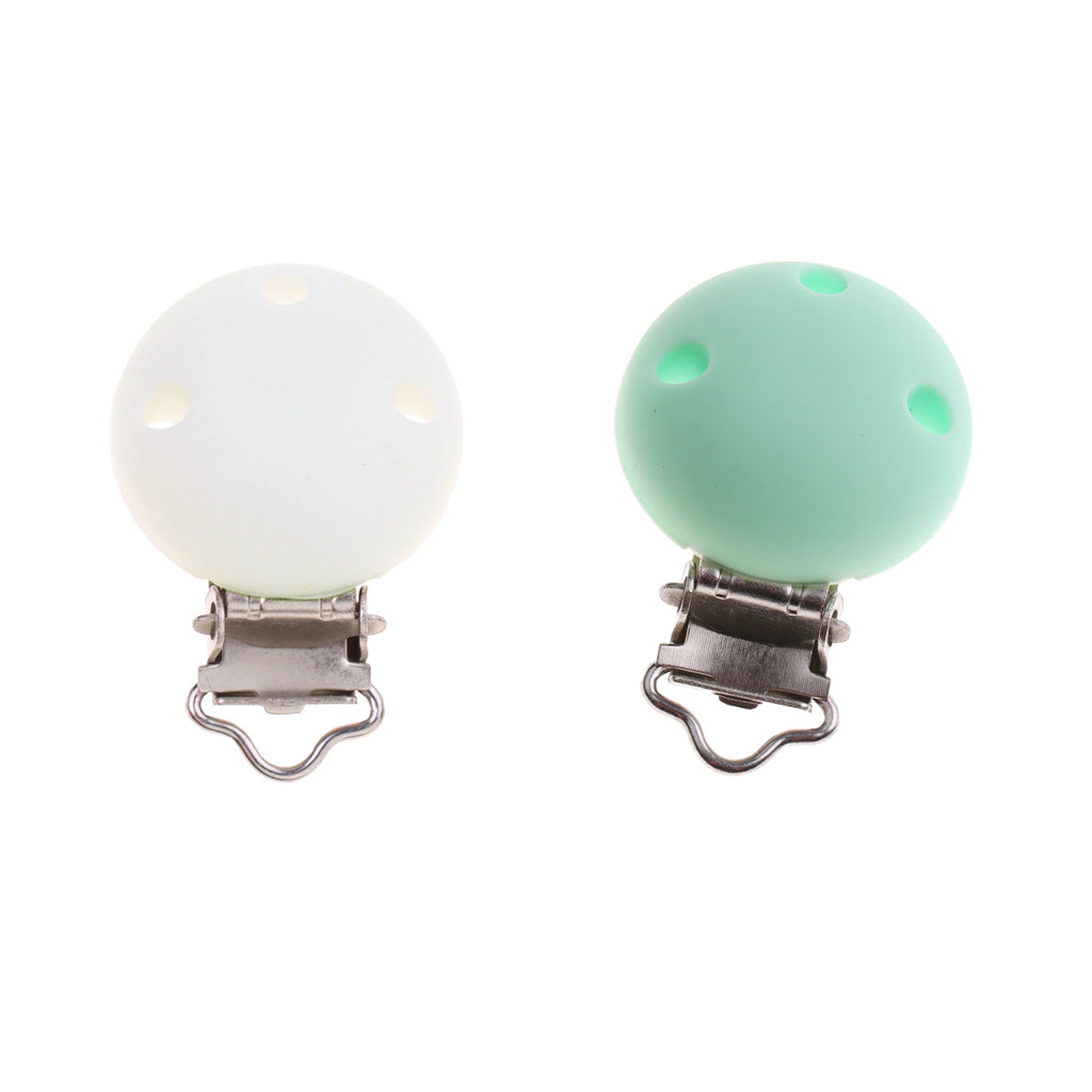 Maxbell 2 Pcs Cute Baby Pacifier Round Silicone Soother Clip Metal Holders Clasp