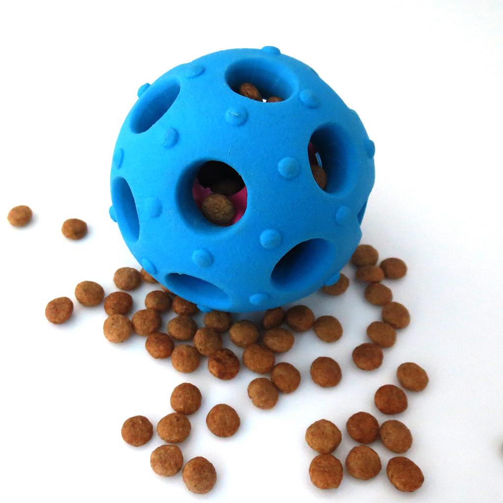 Bite-resistant treat dispenser ball toy, durable and sturdy for pets to chew.