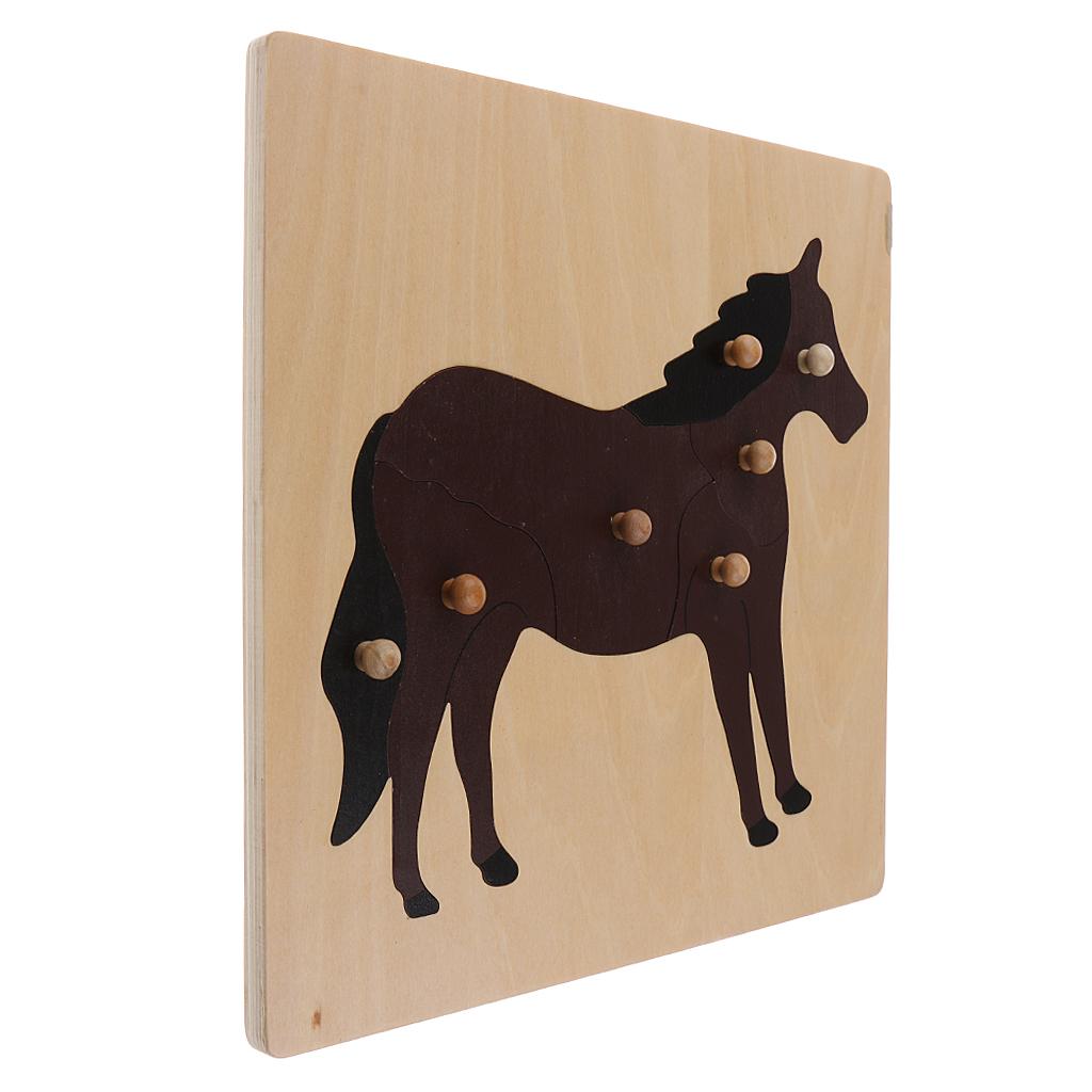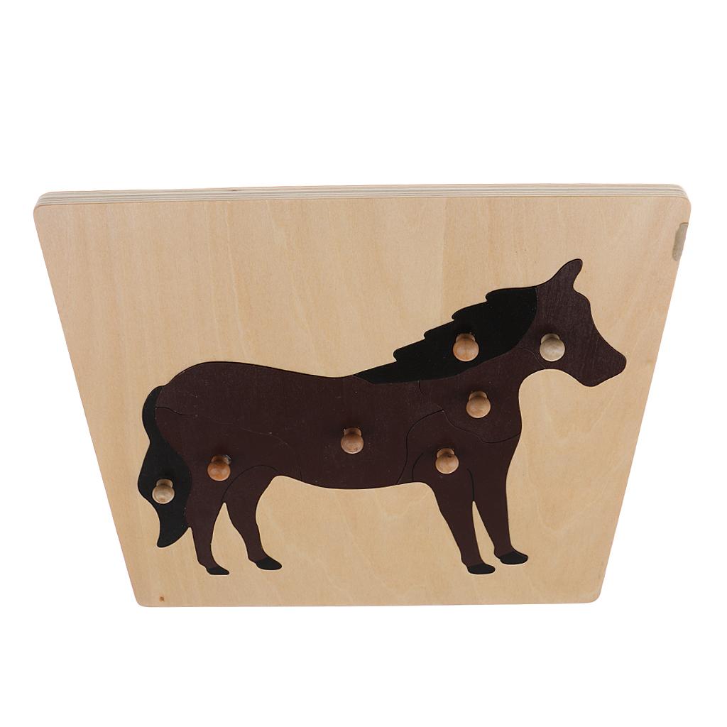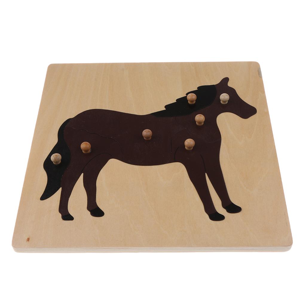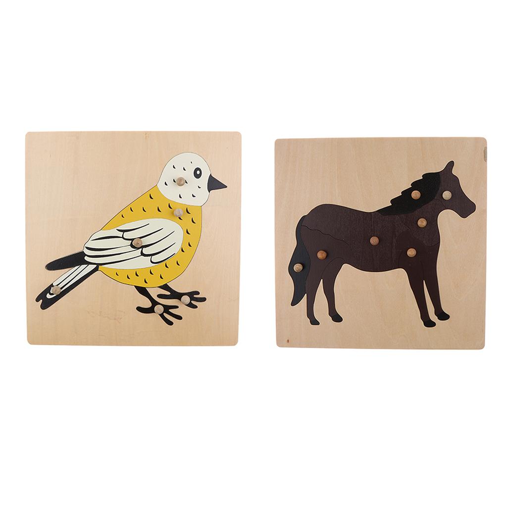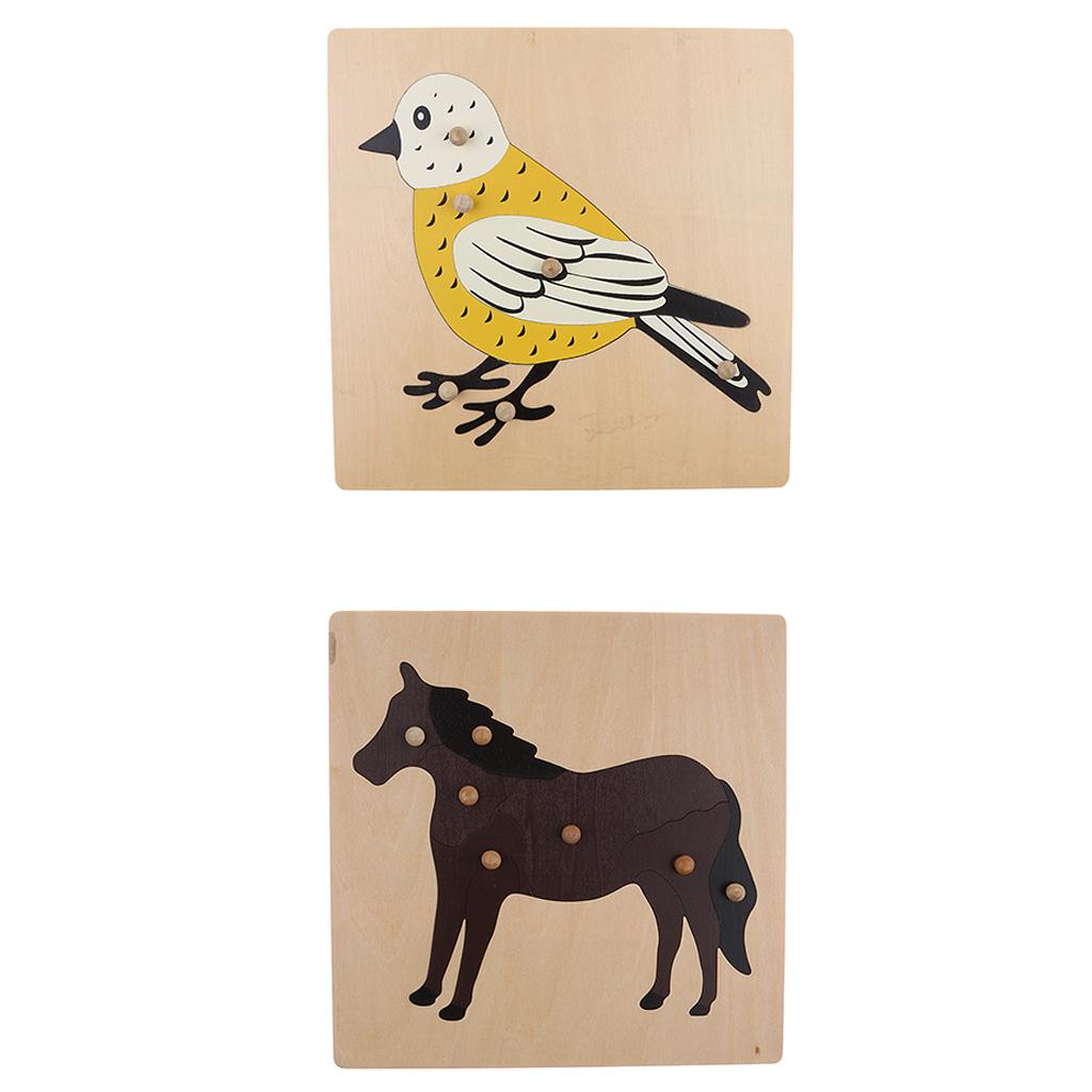 2 Piece (Horse, Bird) Animal Jigsaw Puzzle Montessori Wooden Toy Children Kids Preschool Educational Toy