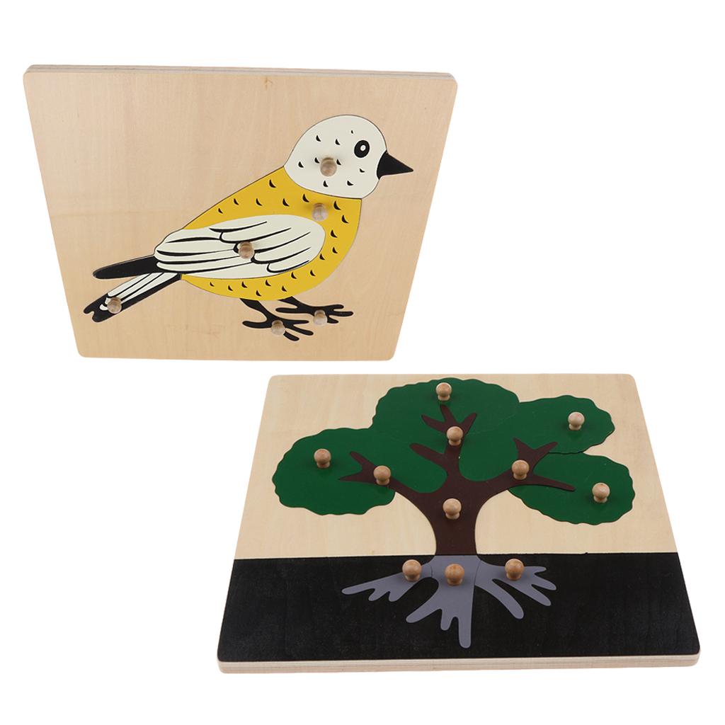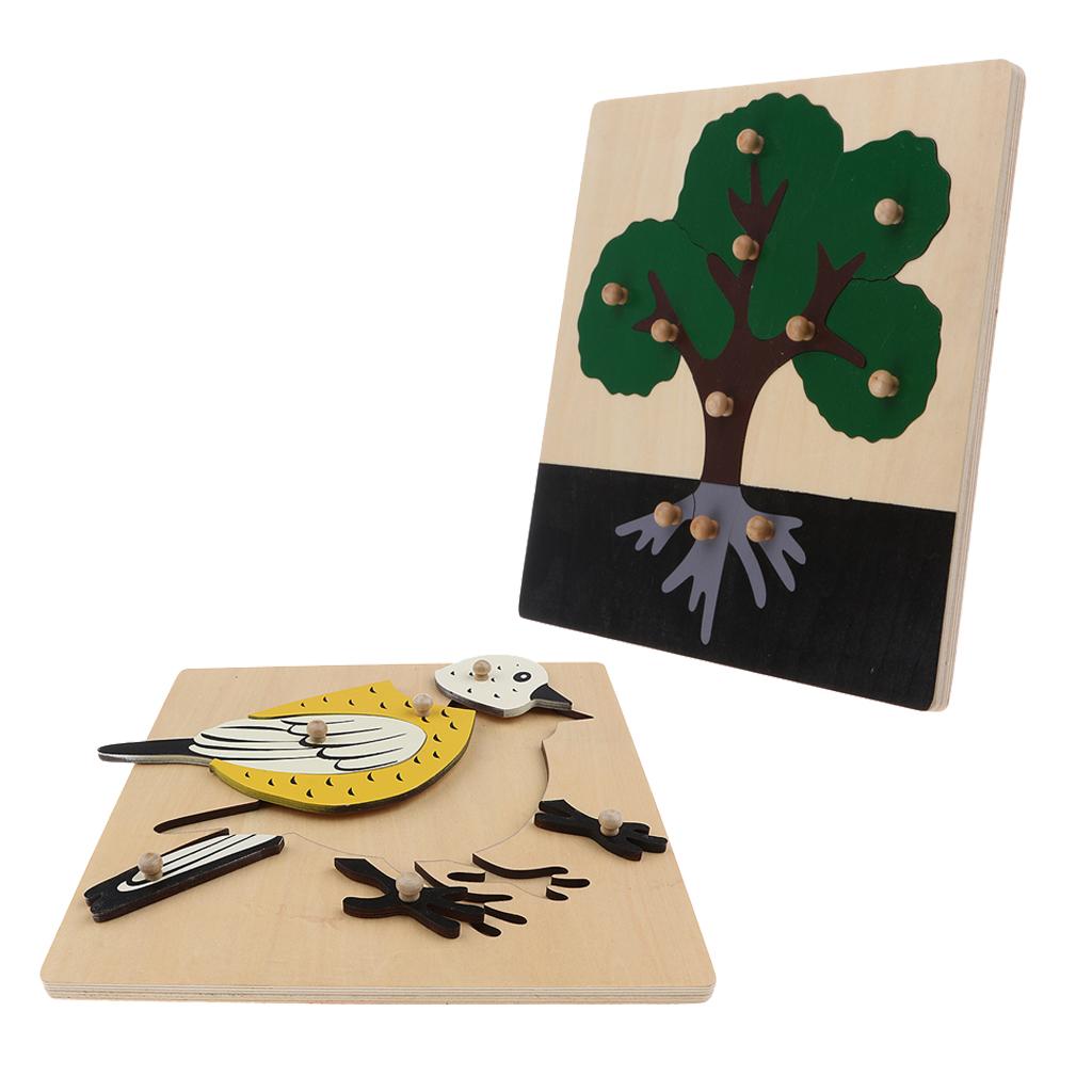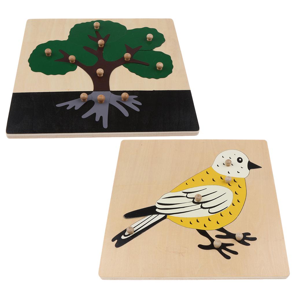 2 Piece (Tree, Bird) Jigsaw Puzzle Montessori Wooden Toy Children Kids Preschool Educational Toy