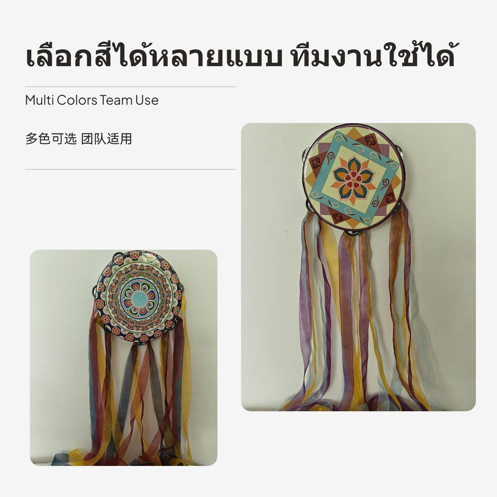 2-Piece Dunhuang Hand Drum, Ribbon Tambourine, Kids Hanfu Dance Prop Bubushenglian 20.32cm