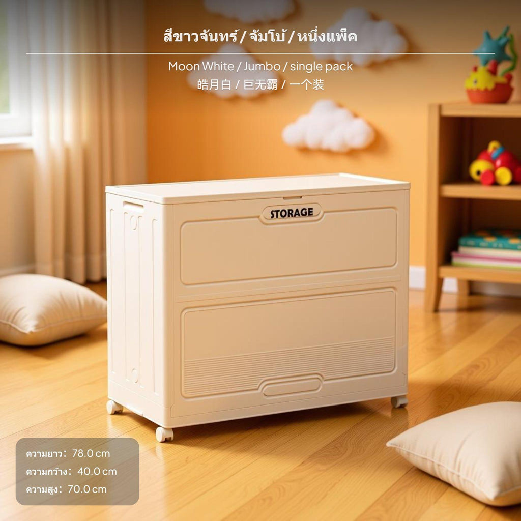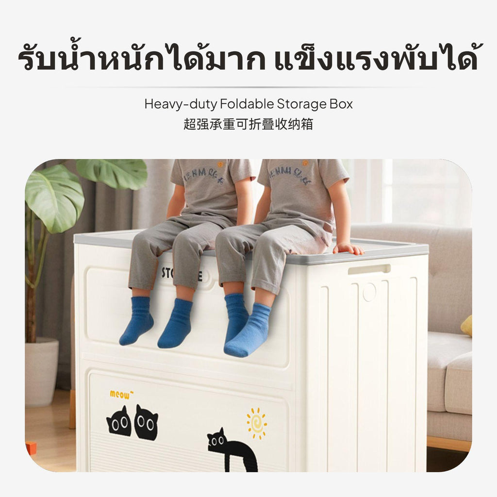 [Spacious 218L Capacity] Organize your home efficiently with this 2-piece storage box set, featuring an extra-largelarge single-box capacity of 218L, perfect for storing seasonal clothes, toys, bedding, and more.[hinged lid Design for Easy entry] The hinged lid opening allows convenient entry to stored items, making it perfect for quick and frequent use in everyday storage needs.[sturdy PP Material & Moisture Protection] Made of high-quality PP material, this storage box offers superb resilience, with a water-resistant and critterresistant design for better protection.[Foldable framework Mobility] Designed to save space, this box is foldable for easy storage when not in use. Equipped with universal casters at the bottom, it ensures easy mobility.[Enchanting Design for children' Rooms] With a cream ivory color and an adorable cartoon cat print, this storage solution not only organizes your home but also enhances the aesthetic of any child’s room.Specification: