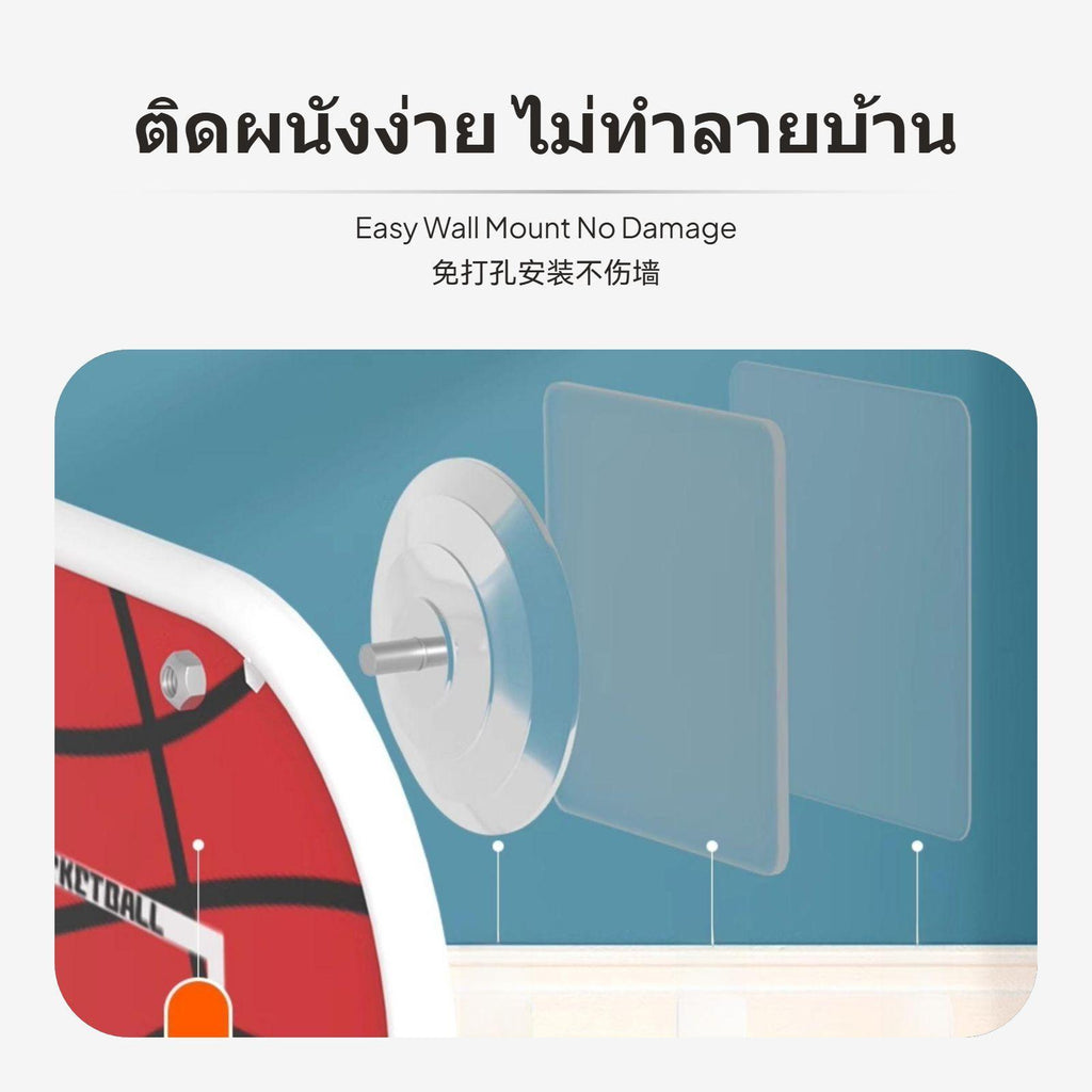 2-Piece Kids court sphere Hoop Set, Wall-Mounted, quiet sphere, No-Drill 46.5cm Adhesive+Silent Ball