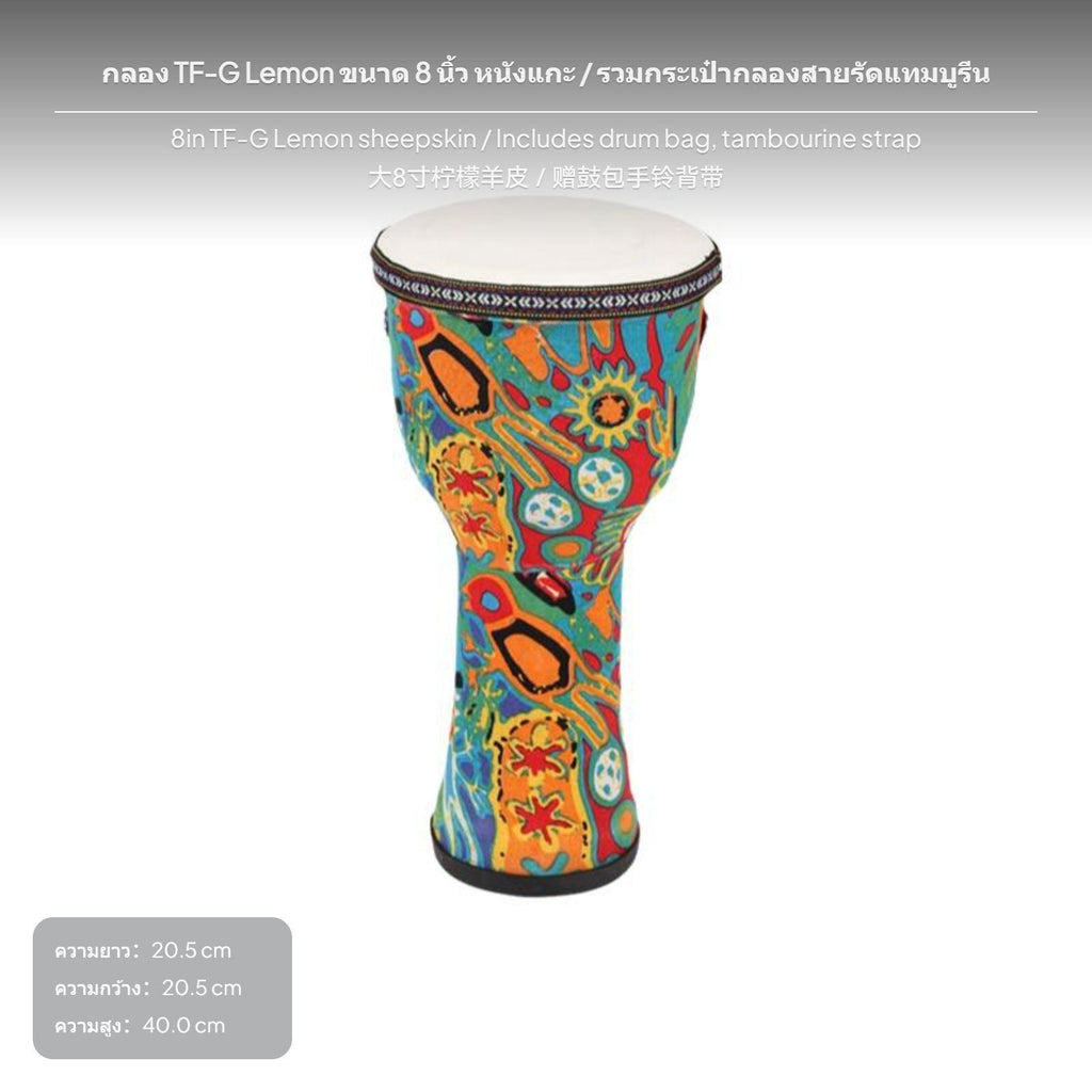 2-Piece Kids Djembe Drum Set, PVC Lightweight Sheepskin, 8in & 10in, Random design Lemon 20.5cm