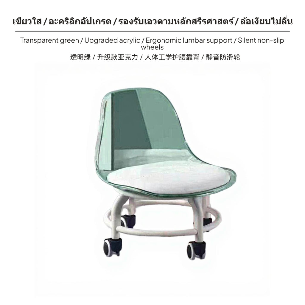 Maxbell 2-Piece Transparent Acrylic Stool Set with casters, Ergonomic Backrest & Soft padding, Modern Minimalist Small Rolling Chair for Home, Kids, Multi-Function, Moveable Green