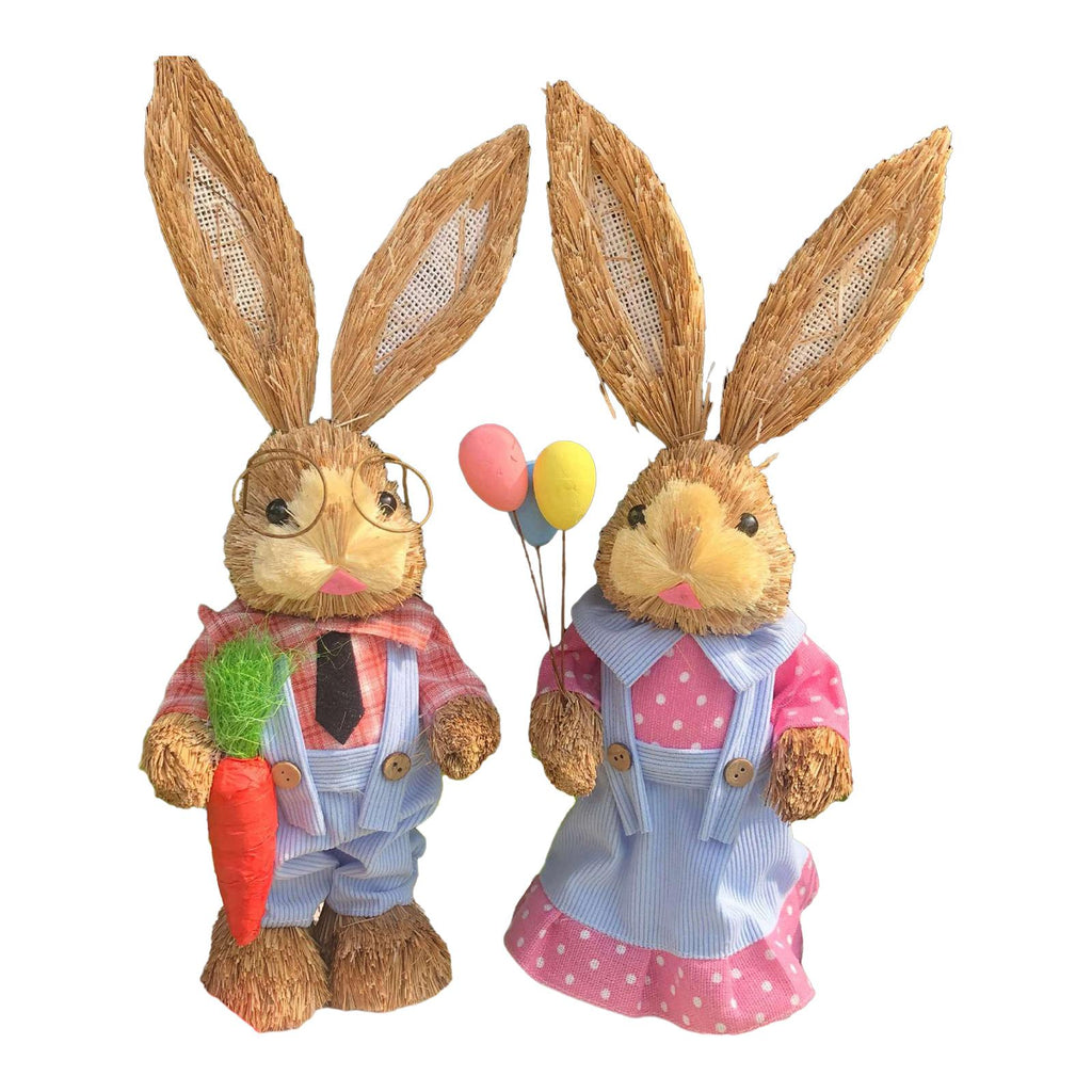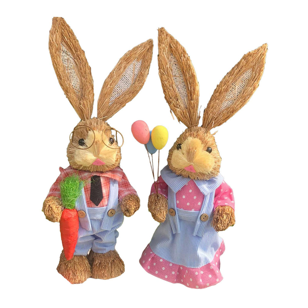 【Product Size】: 1 Pair of Easter bunny figurines, height 35cm/13.78inch. A cute addition for Easter decoration.
