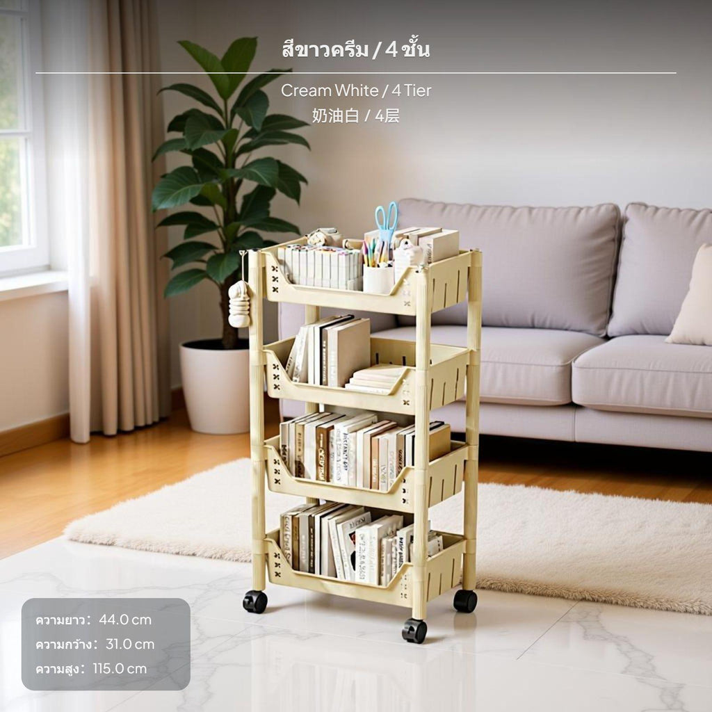 2-Tier Mobile Storage Rack, PP Resin shelf organizer, Multitier Rolling Organizer for Bedroom & Kids Room Cream White 4 Tier