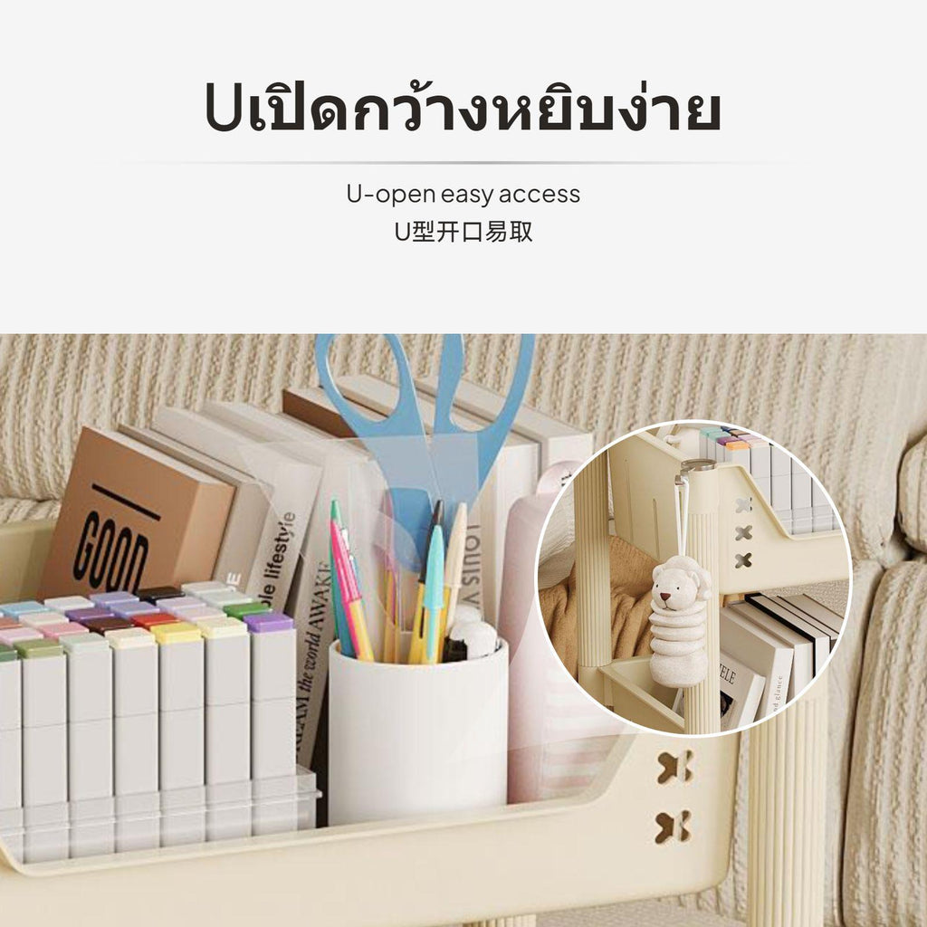 [Multi-Tier Flexibility] This storage rack features 2 to 5 customizable layers with U-shaped deep baskets, designed for secure and convenient reach to books, toys, and everyday essentials.[earth-conscious Material] Made from formaldehydeformaldehyde-exempt PP resin, ensuring protection for families and children while keeping your space neat and clean.[Effortless Mobility] Equipped with 4 universal casters, this rack glides 360° for convenient movement between living room, study, and bedroom without any hassle.[Stable framework] Reinforced thick pillars provide sturdy support, allowing each basket to withstand up to 33 pounds, perfect for organizing bulky items.[multipurpose Usage Scene] perfect for use as a shelf unit, toy organizer, or general storage cart in bedrooms, kids rooms, offices, and more, helping to keep your home orderly.