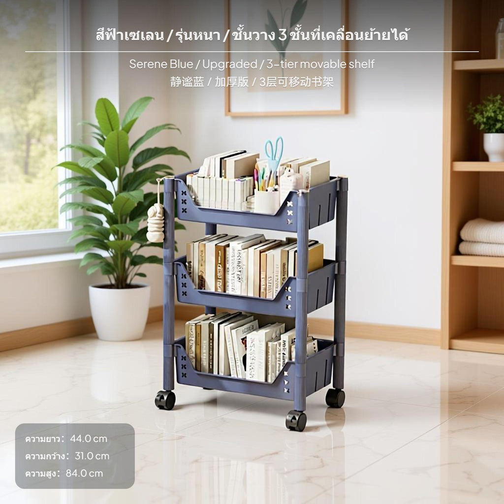 2-Tier Mobile Storage Rack, PP Resin shelf organizer, Multitier Rolling Organizer for Bedroom & Kids Room Serene Blue 3 Tier