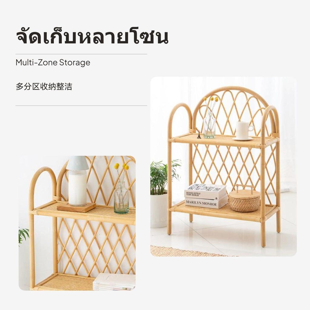 2-Tier Rattan Storage Shelf, Natural Wood Organizer, Ins design shelving unit for Living Room, Kids Room, Entryway