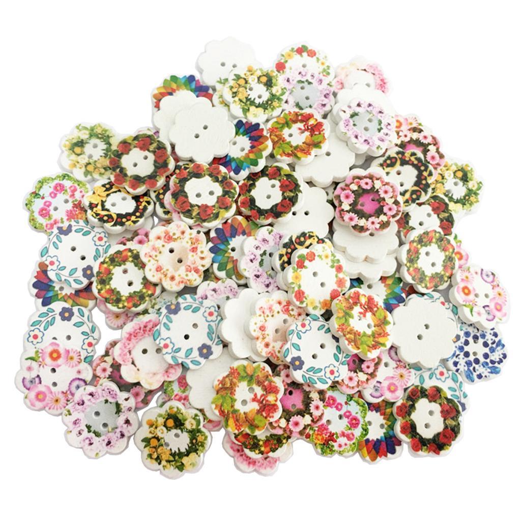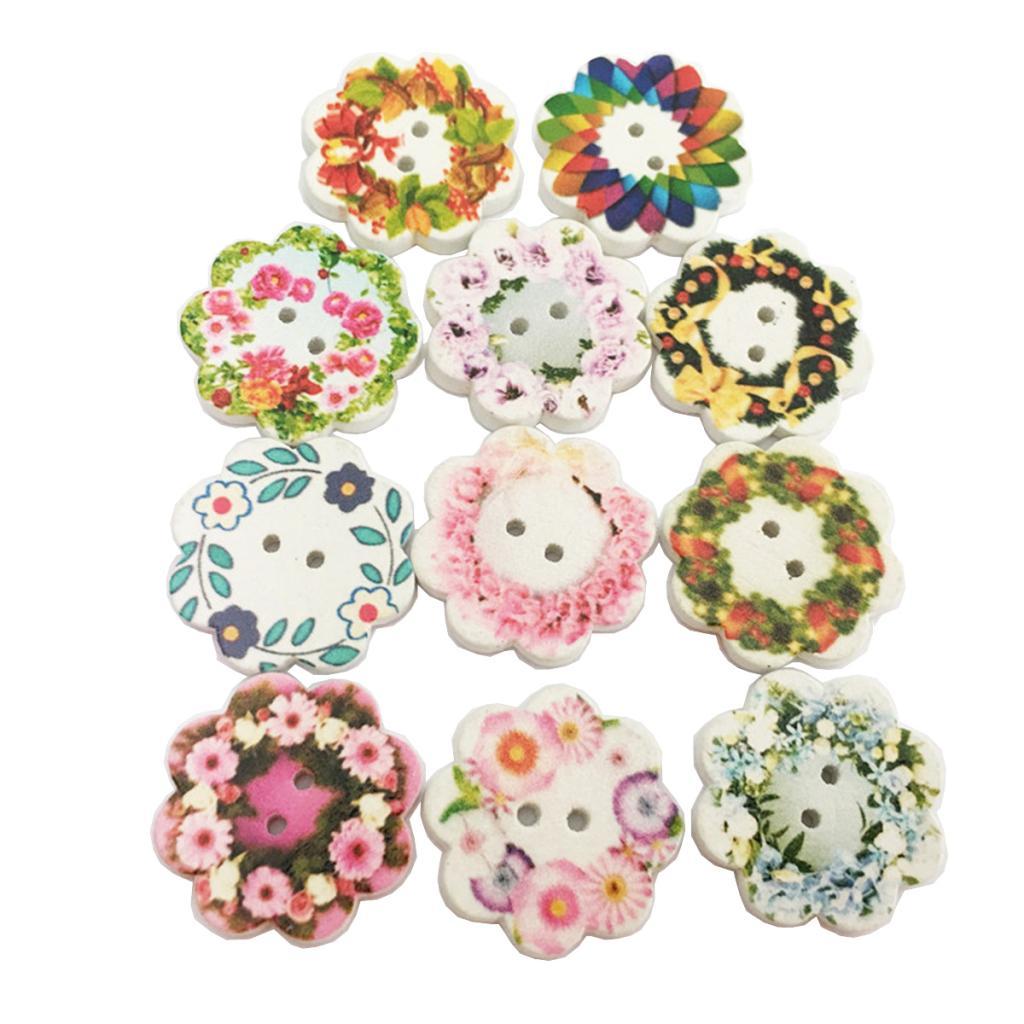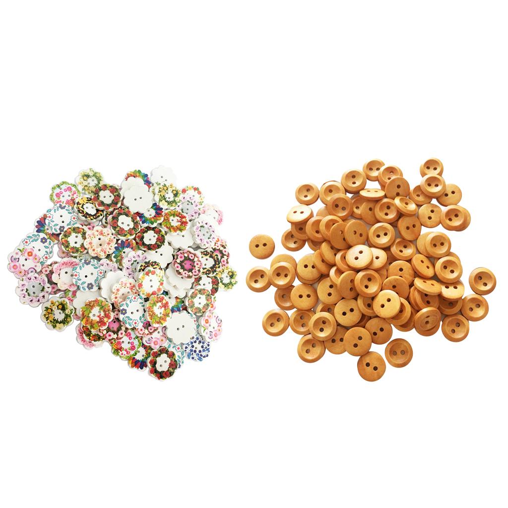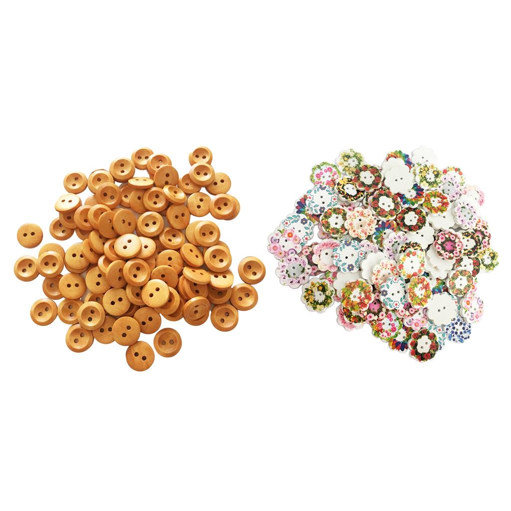 Maxbell 200Pcs 2 Holes Flower & Round Sewing Wooden Buttons for Kids DIY Accessories