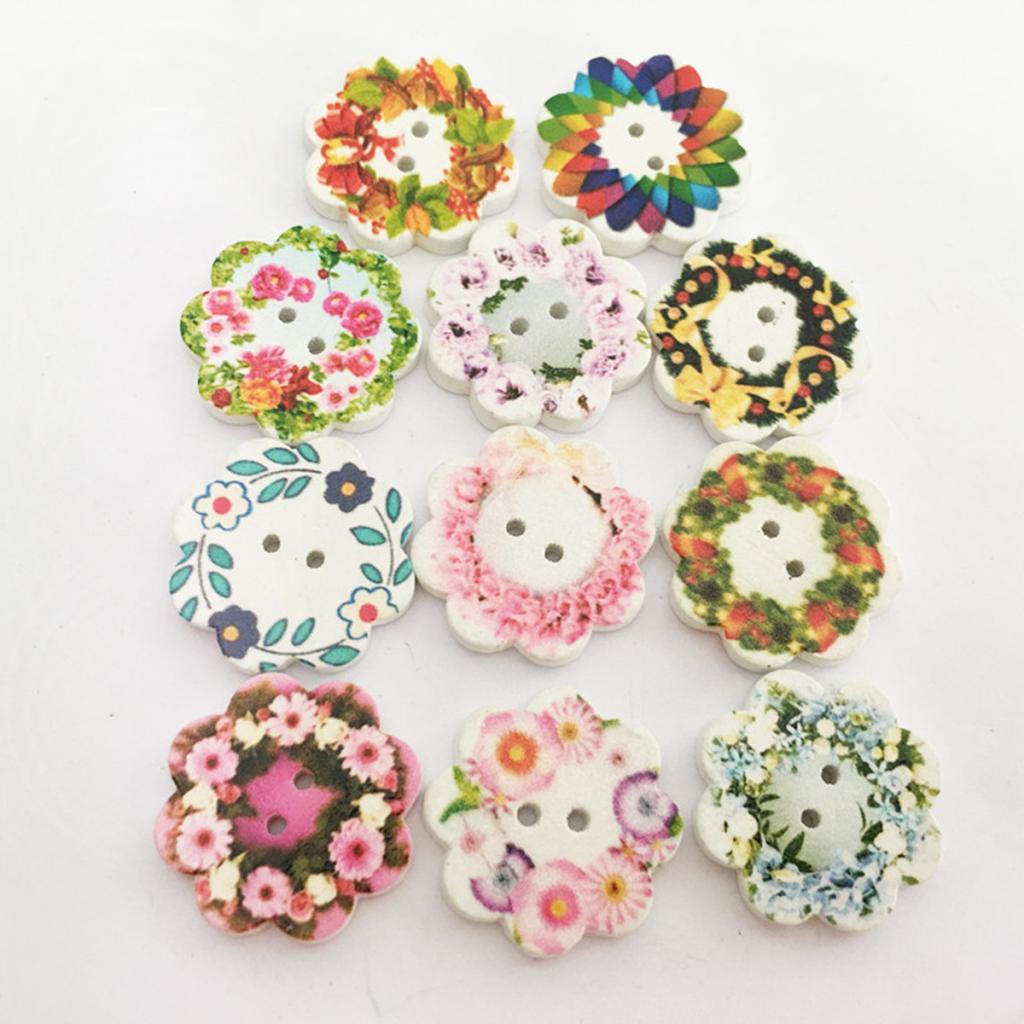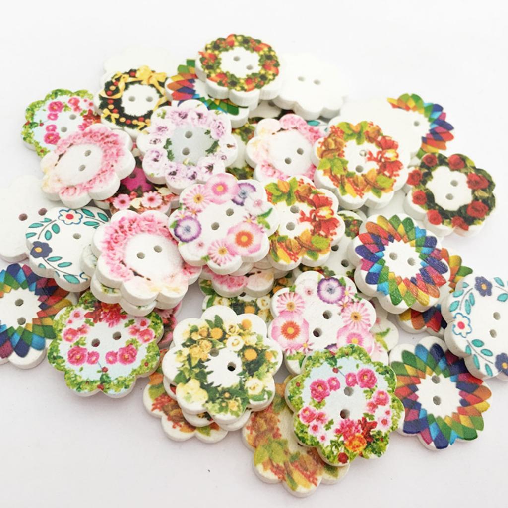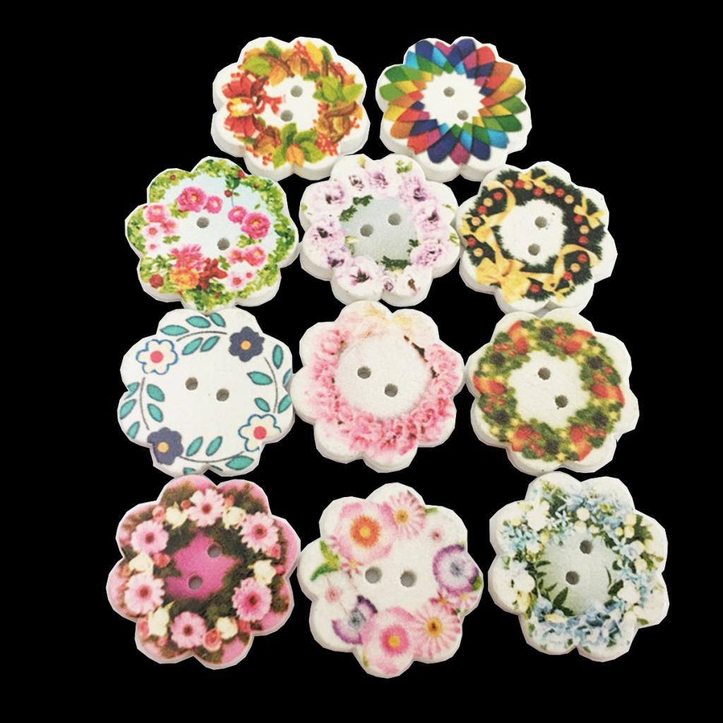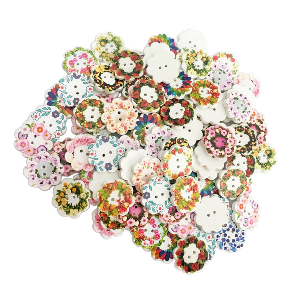 Maxbell 200Pcs 2 Holes Flower & Round Sewing Wooden Buttons for Kids DIY Accessories