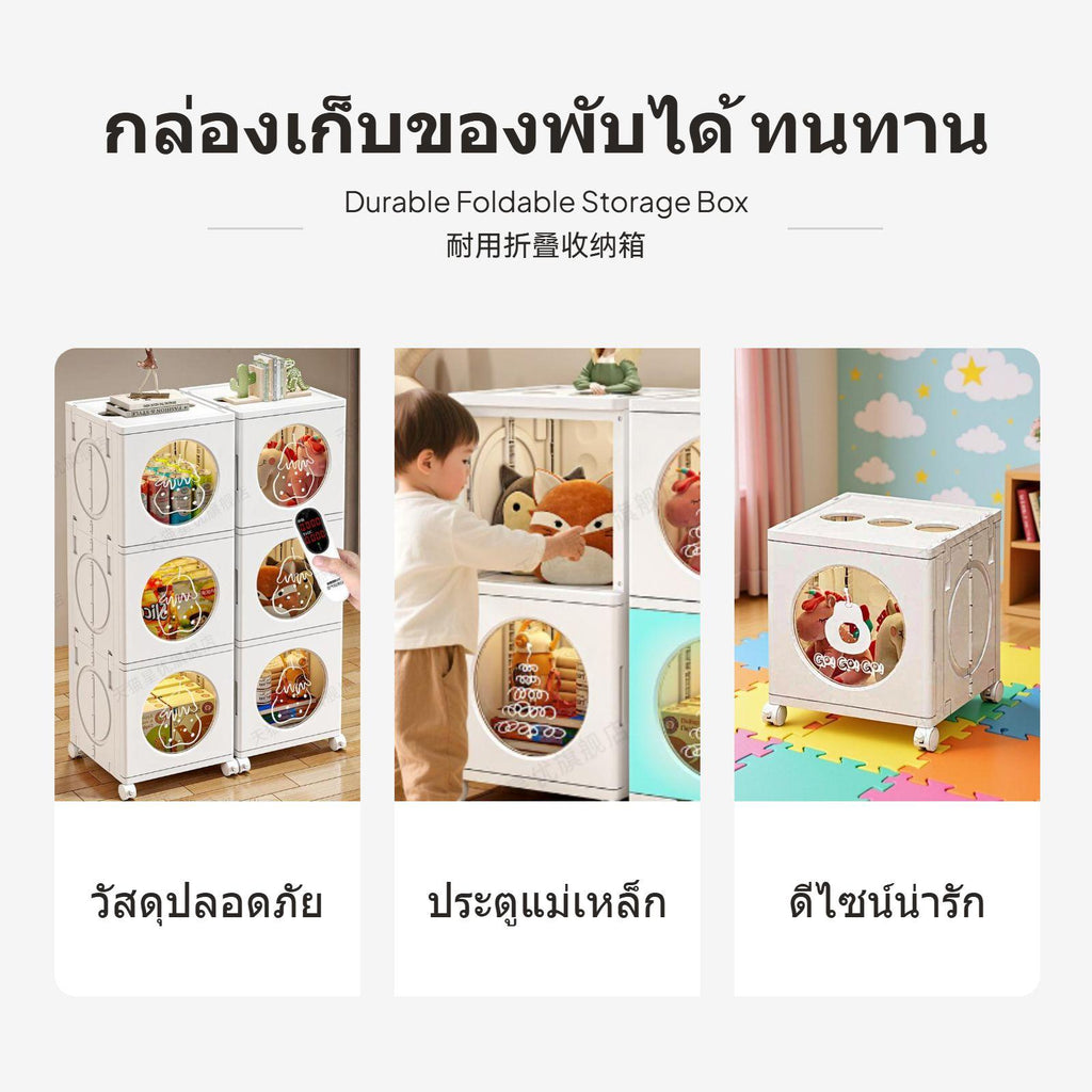 [adaptable and Spacious Storage Solution] This 20L foldable toy storage box is perfect for organizing toys, clothes, snacks, and more, keeping your living room, kids' room, or bedroom tidy and neat.[Premium ABS Material with Safety in Mind] Built from environmentally-conscious, thickened ABS material, this storage box ensures a safe, odorless usage for children and offers outstanding weight capacity for dependable usage.[Convenient attractive Door and Clear Design] Featuring a attractive transparent front door, it provides easy entry and visibility of items inside, encouraging children to develop autonomousorganizing habits.[Portable and Stackable with stable Features] Equipped with four 360° caster casters (two lockable) for easy mobility and side buckles for stable stackable use; prevents tipping for optimal space-saving organization.[Adaptable for Various Spaces and Styles] Available in cheese ivory and cream with a choice of simple or cartoon designs, it complements modern, minimal, or playful decor while folding flat when not in use.Specification: