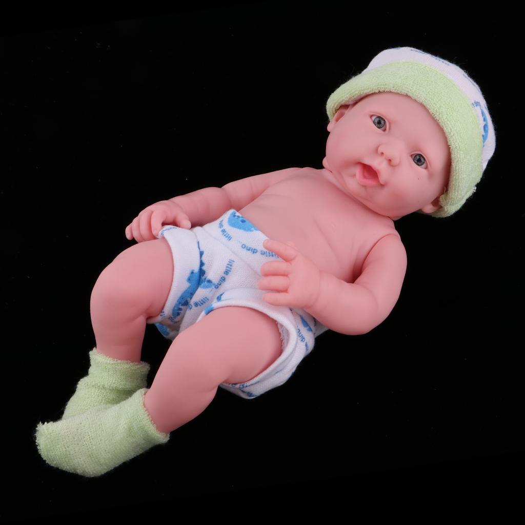 Maxbell 25cm Soft Vinyl Realistic Infant Newborn Baby Doll Kids Toy in Green Clothes
