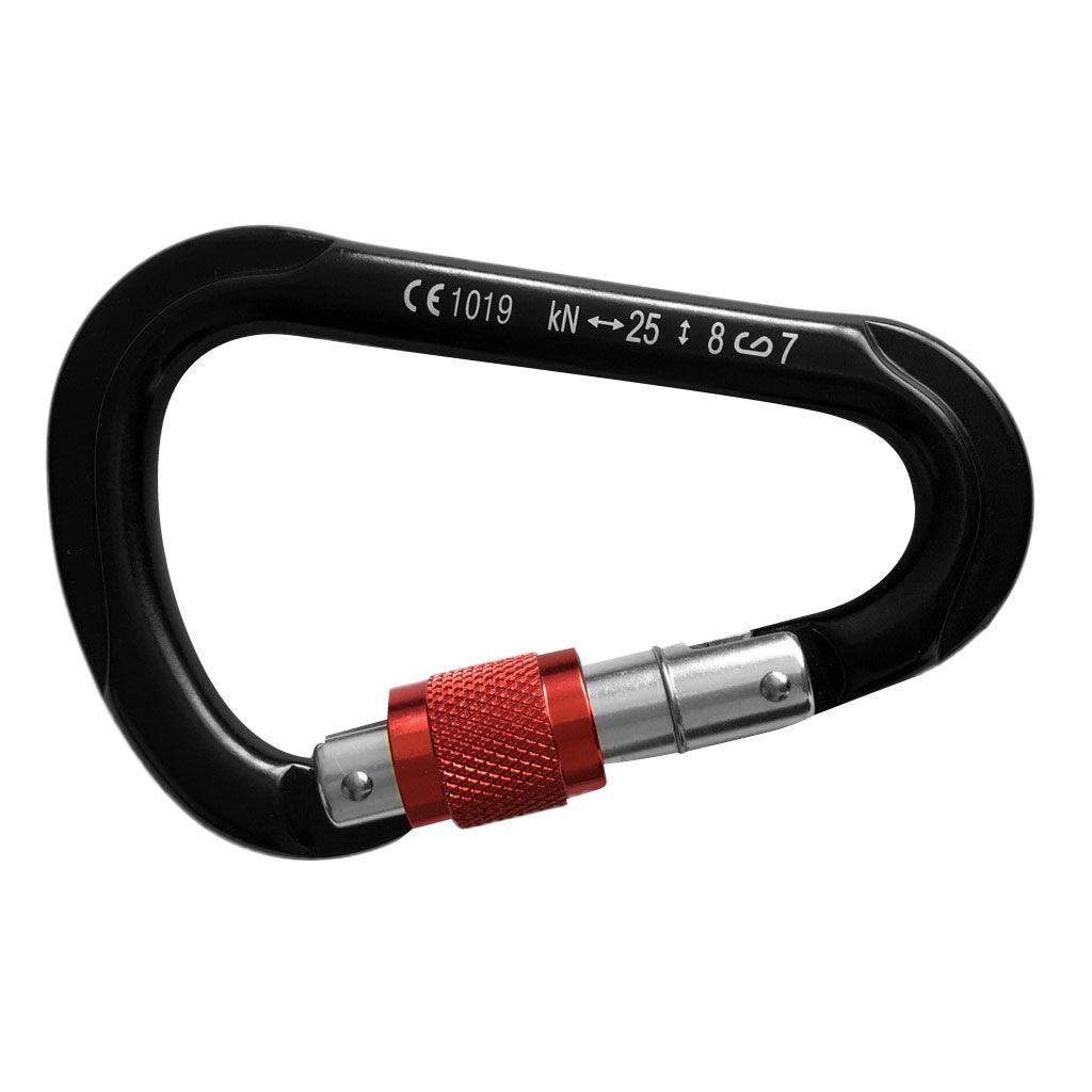 Maxbell Maxbell 25KN Carabiner D-Ring Climbing Screw Lock Snap Hook Rappel Screwgate Black
