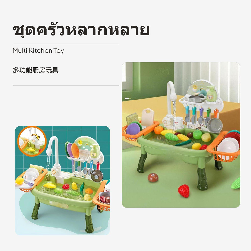 【Comprehensive Role Play activity】 This 29-piece kids dishwasher toy set combines circulating water, kitchen accessories, and realistic design to encourage hands-on learning and imaginative play.【Safe sturdy Materials】 Made from high-quality plastic and electronic components, this toy is quality assured certified for safety and built to withstand frequent indoor play.【Interactive Circulating Water System】 Features an electric water circulation system and a 180° rotating faucet, allowing children to enjoy a realistic dishwashing activity while learning about water conservation.【Adjustable & Spacious Design】 The removable table legs and large-capacity sink adapt to different play scenarios and ages, making it suitable for family activities, gifts, and educational training.【Random Color design Included】 The set comes in randomly assigned hues and designs, adding surprise and variety to each play playtime; perfect for indoor play, parent-child interaction, and ability development.Specification: