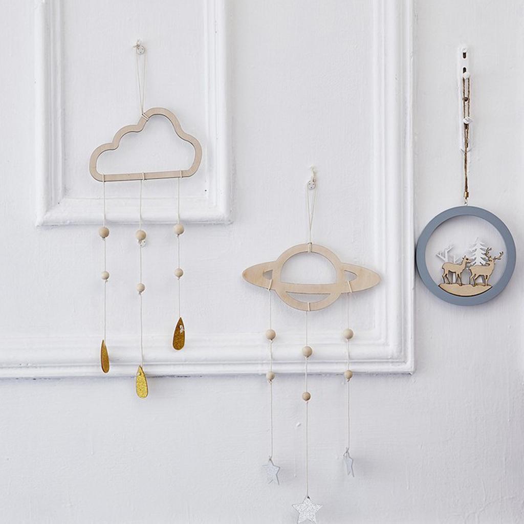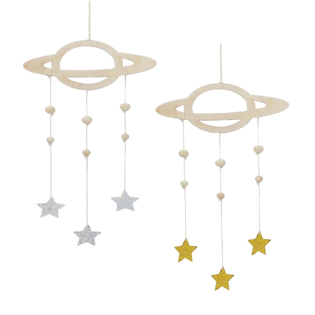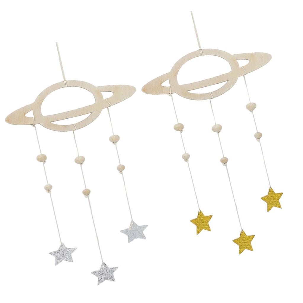 Maxbell 2Pcs Nordic Planet Star Kids Room Nursery Wood Wall Hanging Home Decor