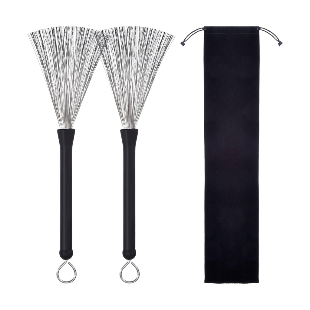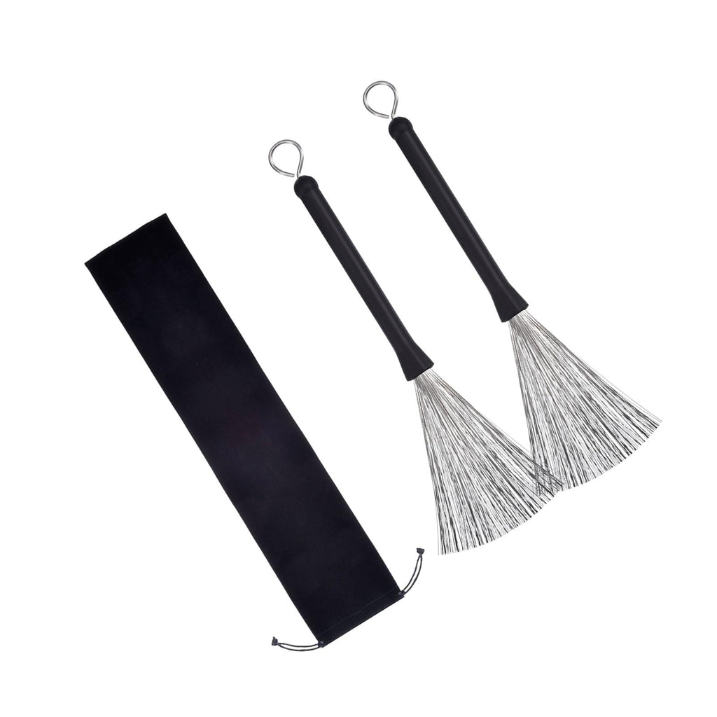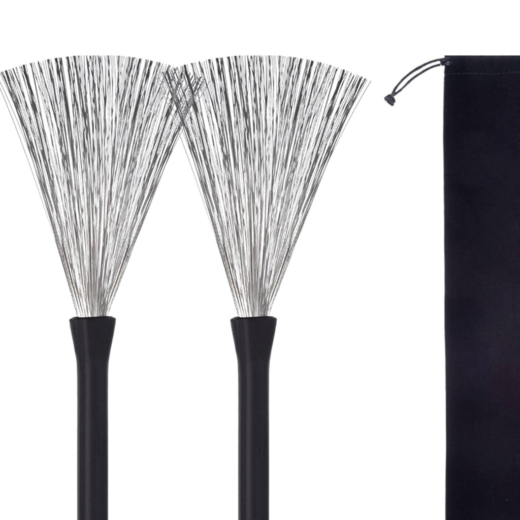 Maxbell 2Pcs Retractable Drum Wire Brushes Drum Brushes for Folk Beginner Practicing