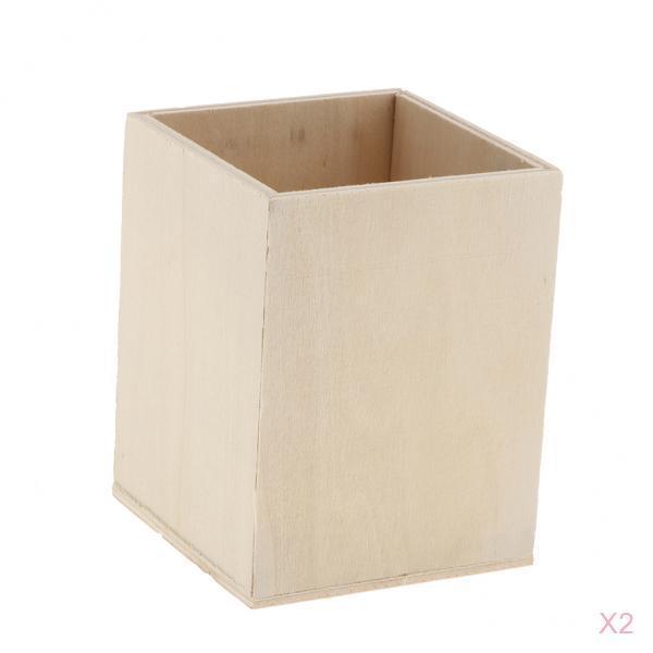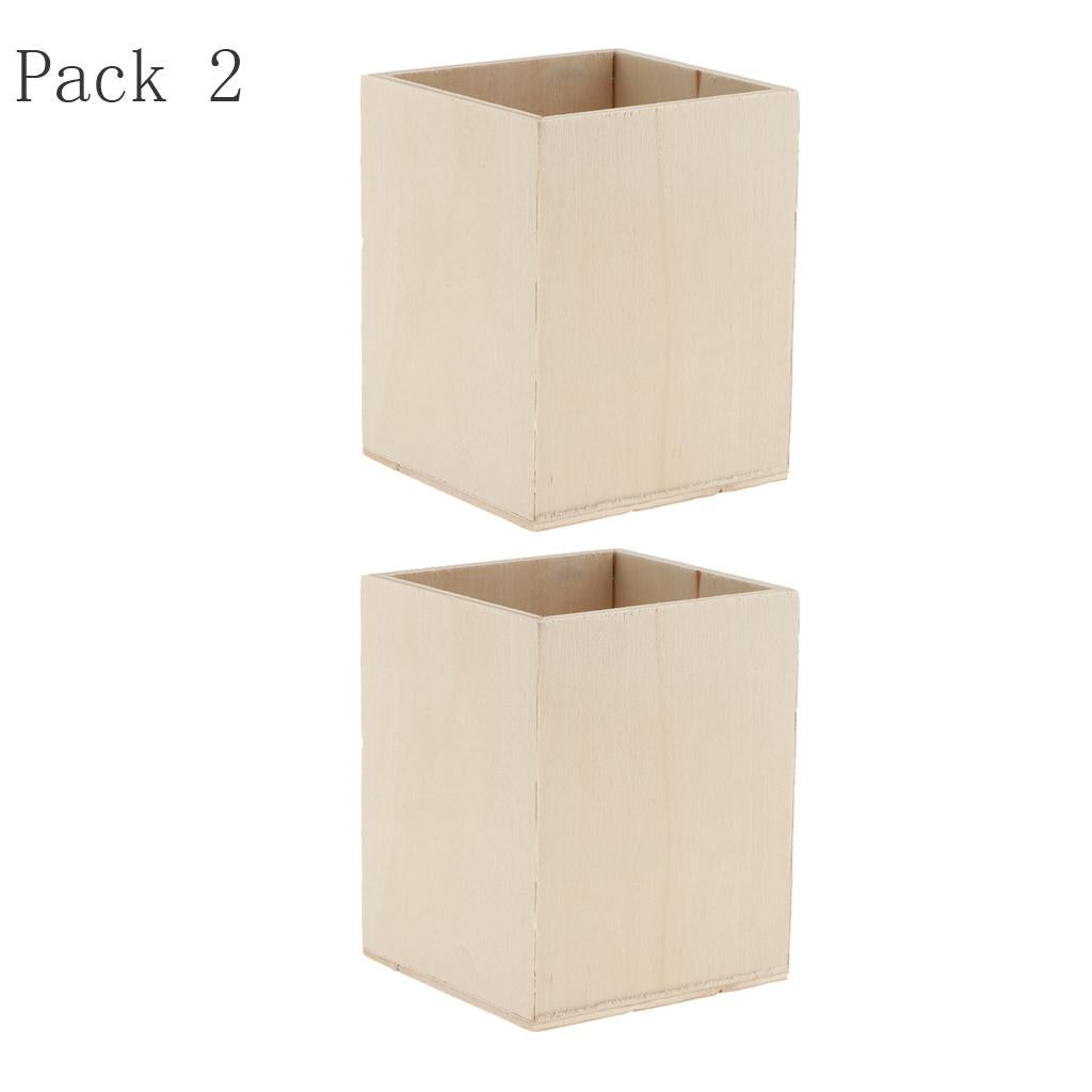 2 Pieces Unfinished Wood Pen Container