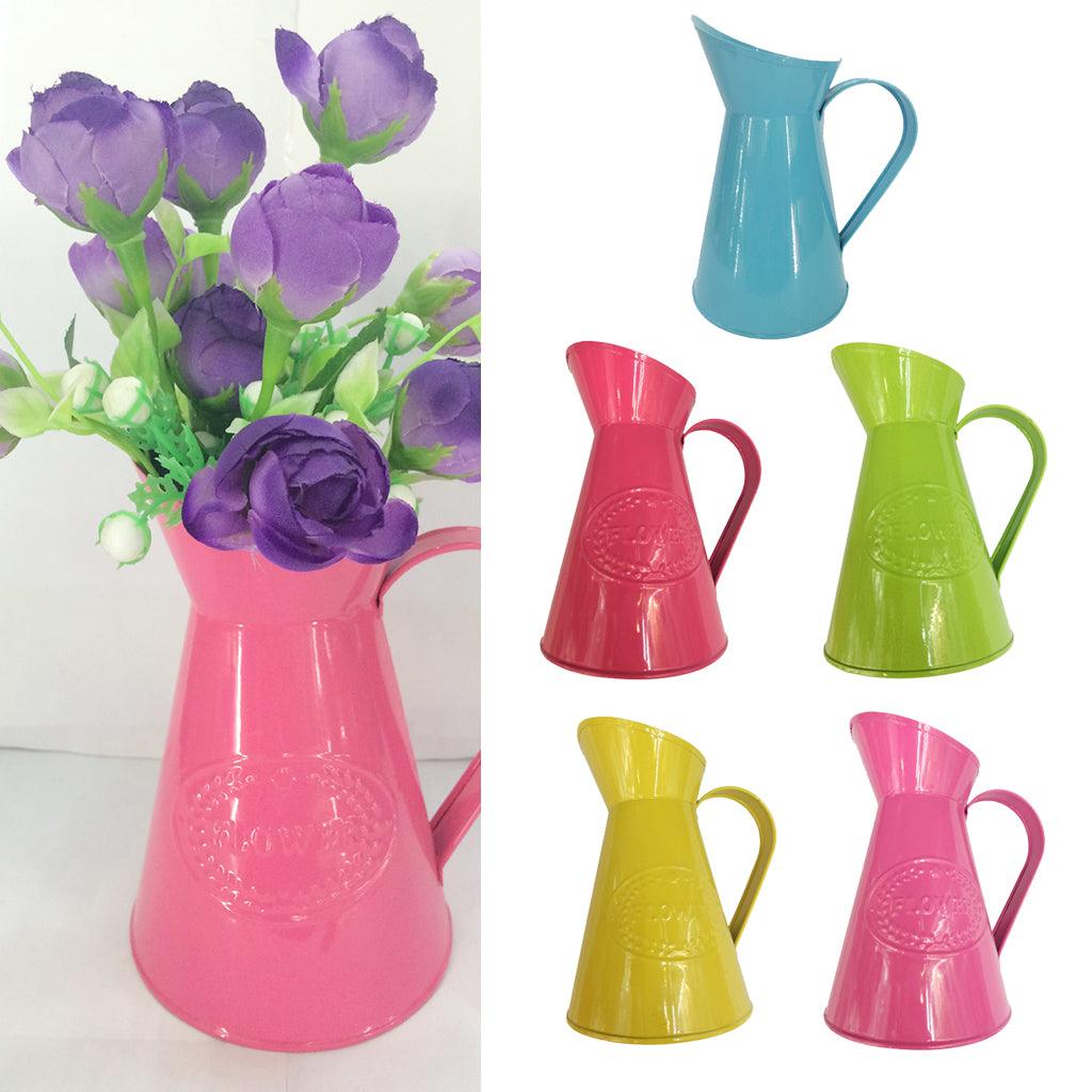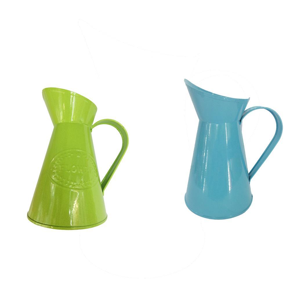 Maxbell 2pcs Wrought Iron Shabby Chic Metal Jug Vase Pitcher Flower Holder for Home Wedding Decoration