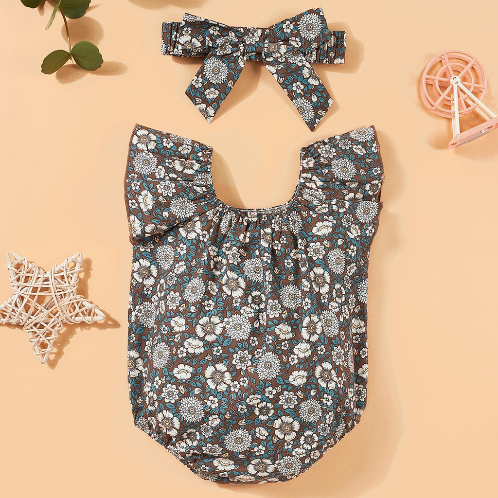 【Design】: This adorable romper features a floral print design with sleeves, inspired by American country . It's perfect for your little to crawl around in, making it both stylish and practical.