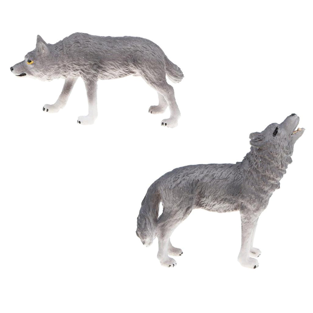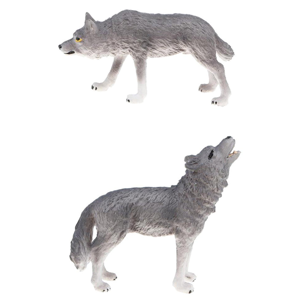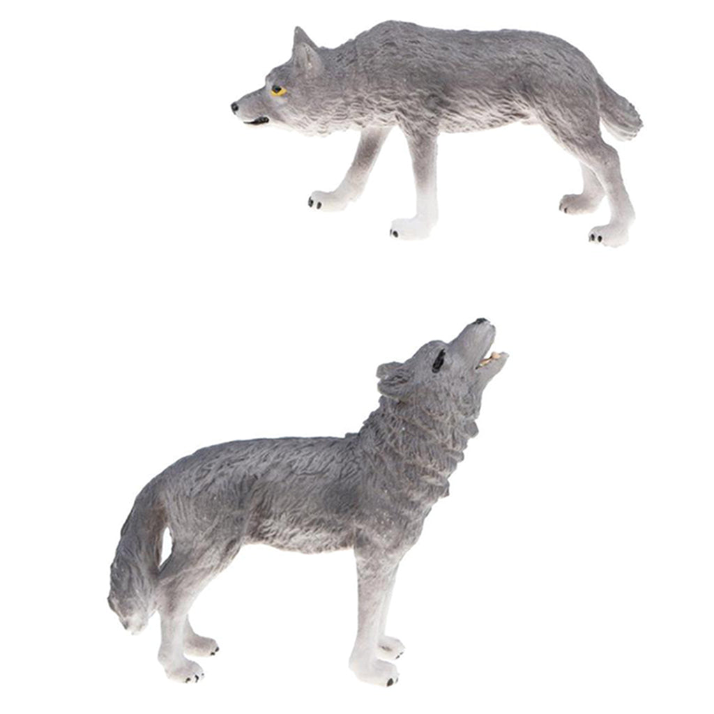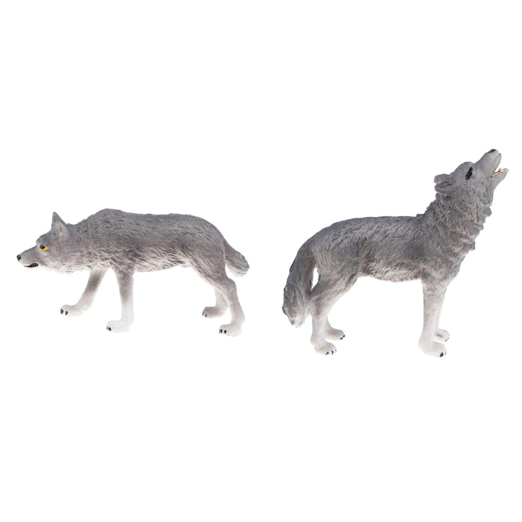 Maxbell 2x Plastic Animal Model Figurines for Kids Gift Home Decor - Grey Wolves