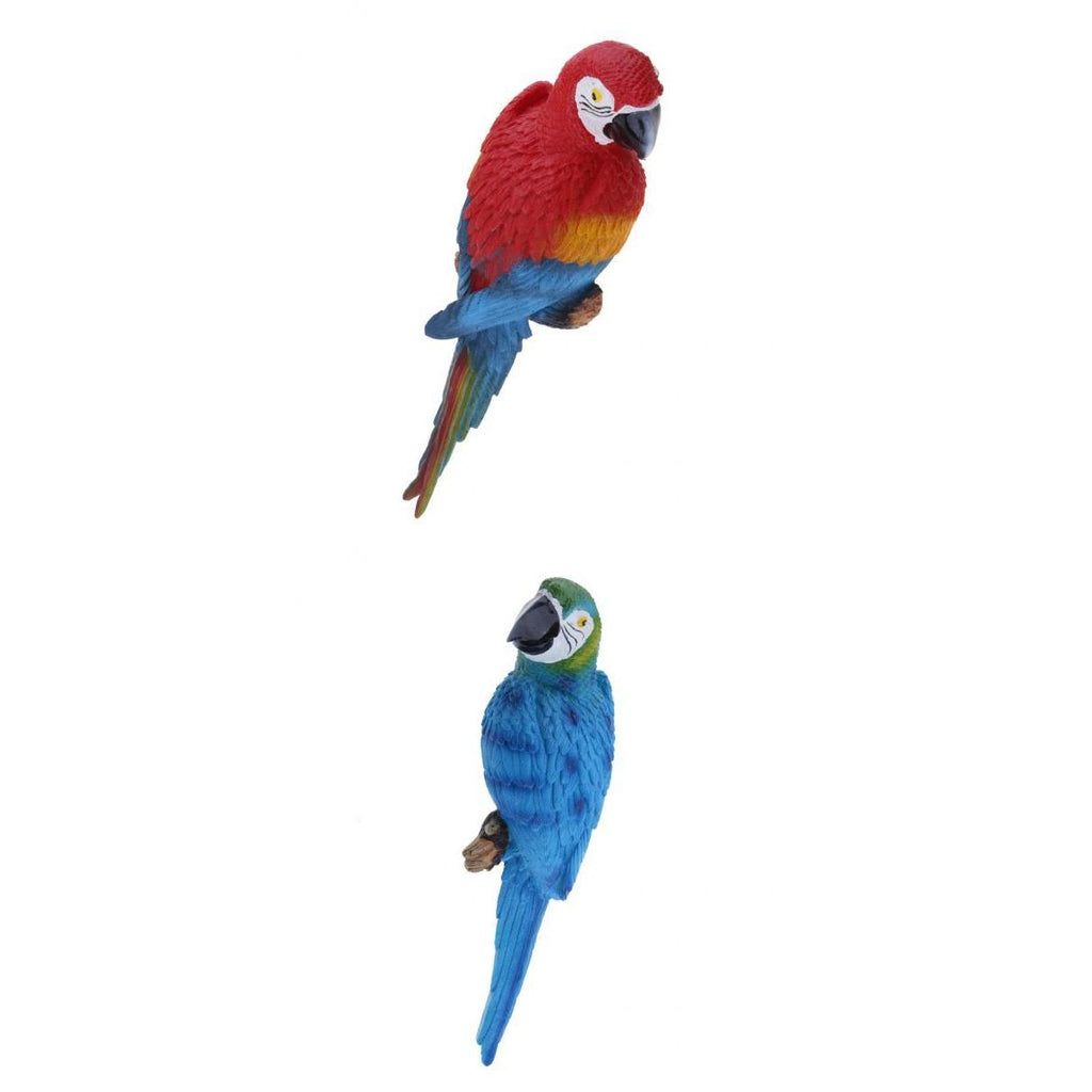 Maxbell 2x Resin Parrot Bird Model Toy Animal Ornament Hanging Decor Red & Blue 31cm