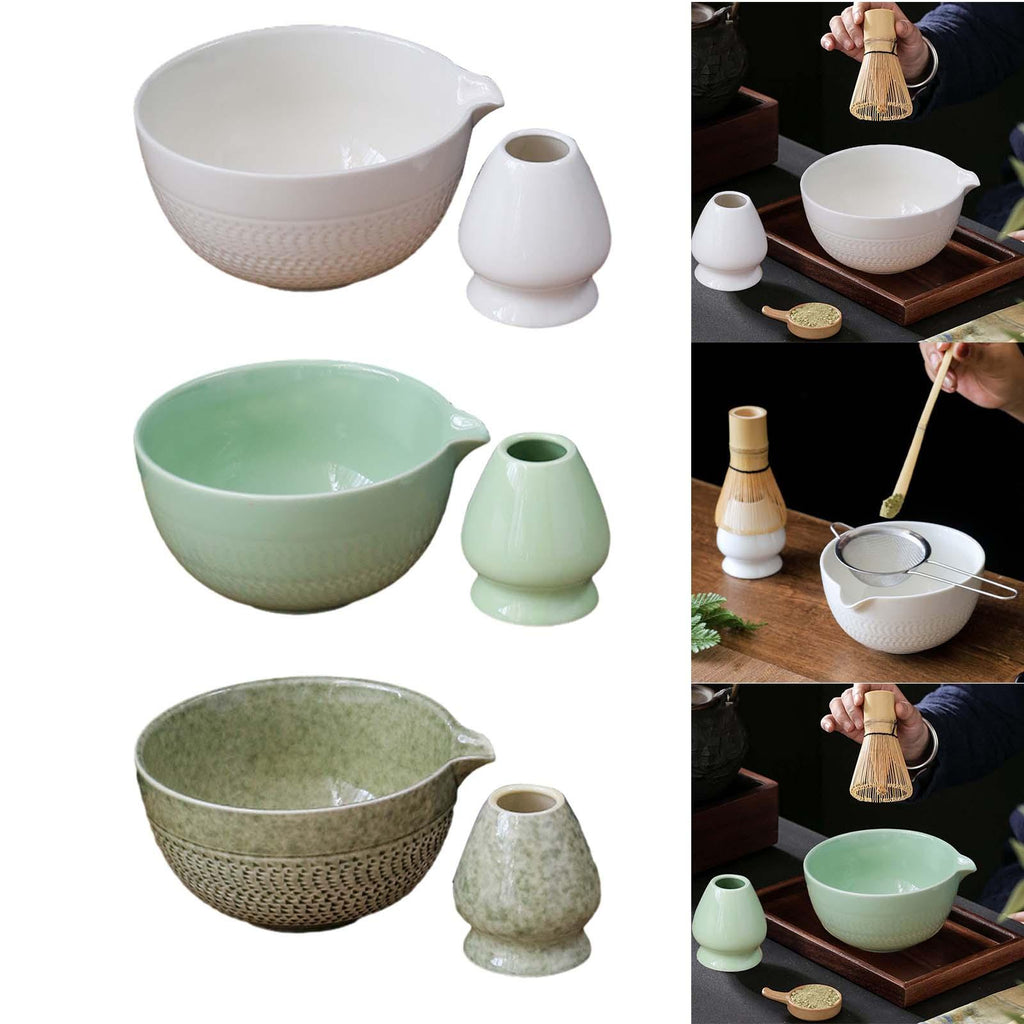 【Matcha Set】: Package includes a ceramic green tea bowl and a matcha whisk holder.