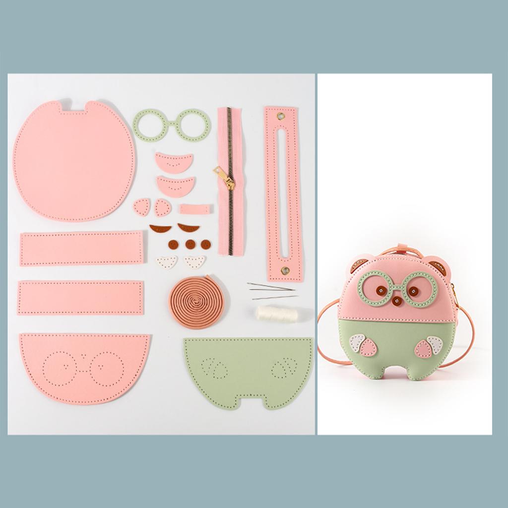 Maxbell 2xDIY Leather Crossbody Bag Kit Easy for Kids Leather Sewing Kits Pink