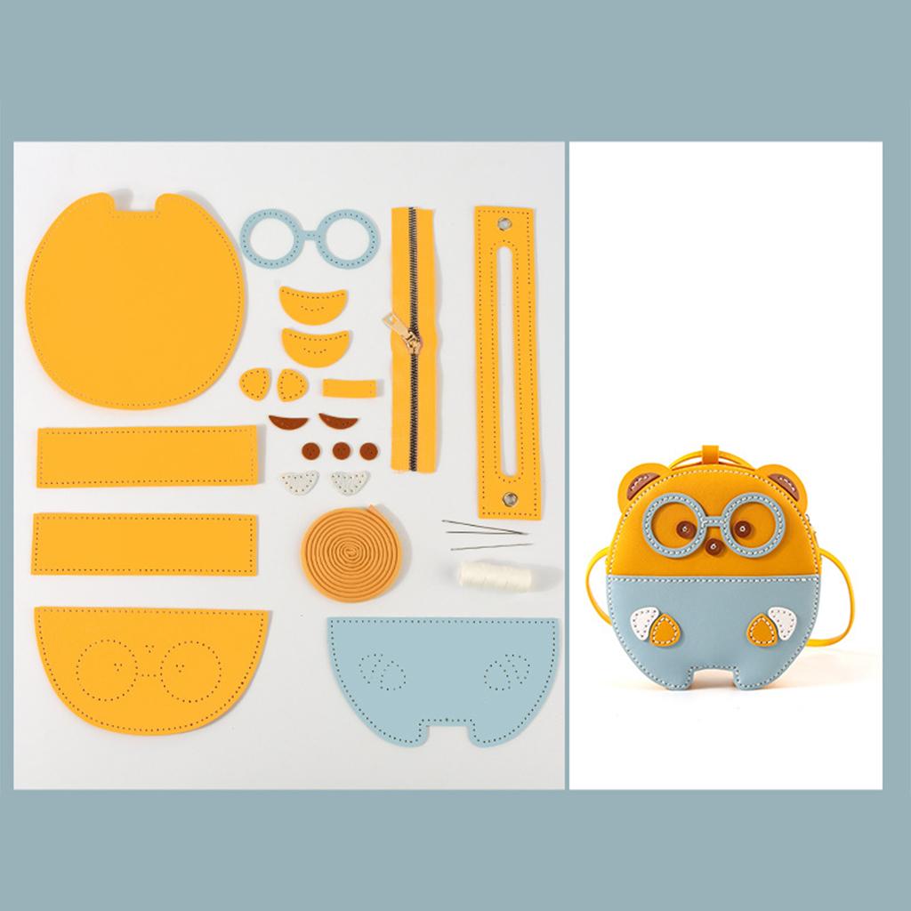 Maxbell 2xDIY Leather Crossbody Bag Kit Easy for Kids Leather Sewing Kits Yellow