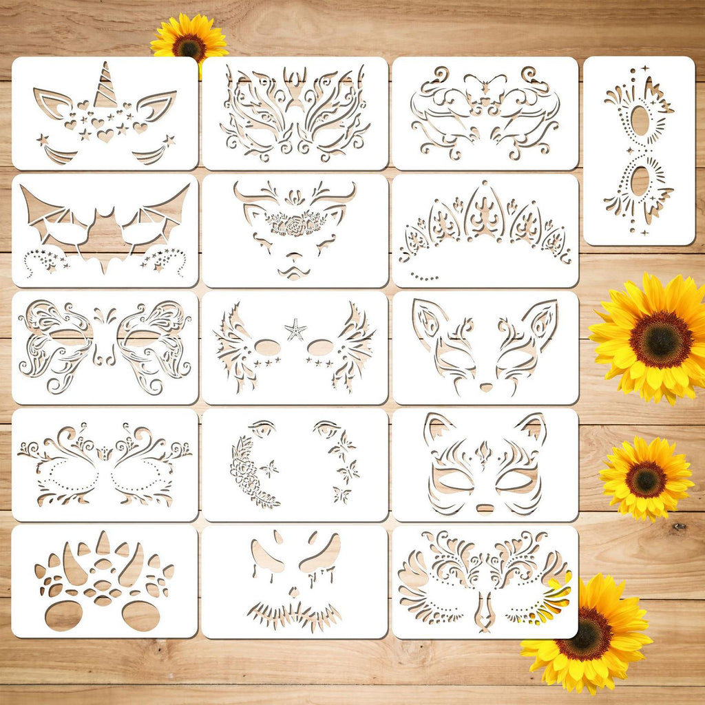 【Valued Package】There are 16 different patterns face paint stencils in package to meet your diy needs.