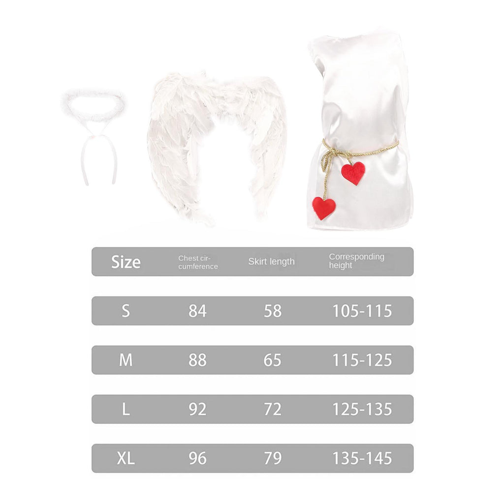 【Product Inclusions】: This Valentine's Day Cupids Costume for Kids includes a headpiece, dress, and wing - everything your child needs to transform into a charming Cupids for any performance or party.